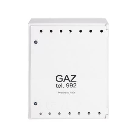 Punkt redukcyjno-pomiarowy na 2 gazomierze G4/G6, w pionie, w skrzynce z laminatu 670x870x250 - popielaty