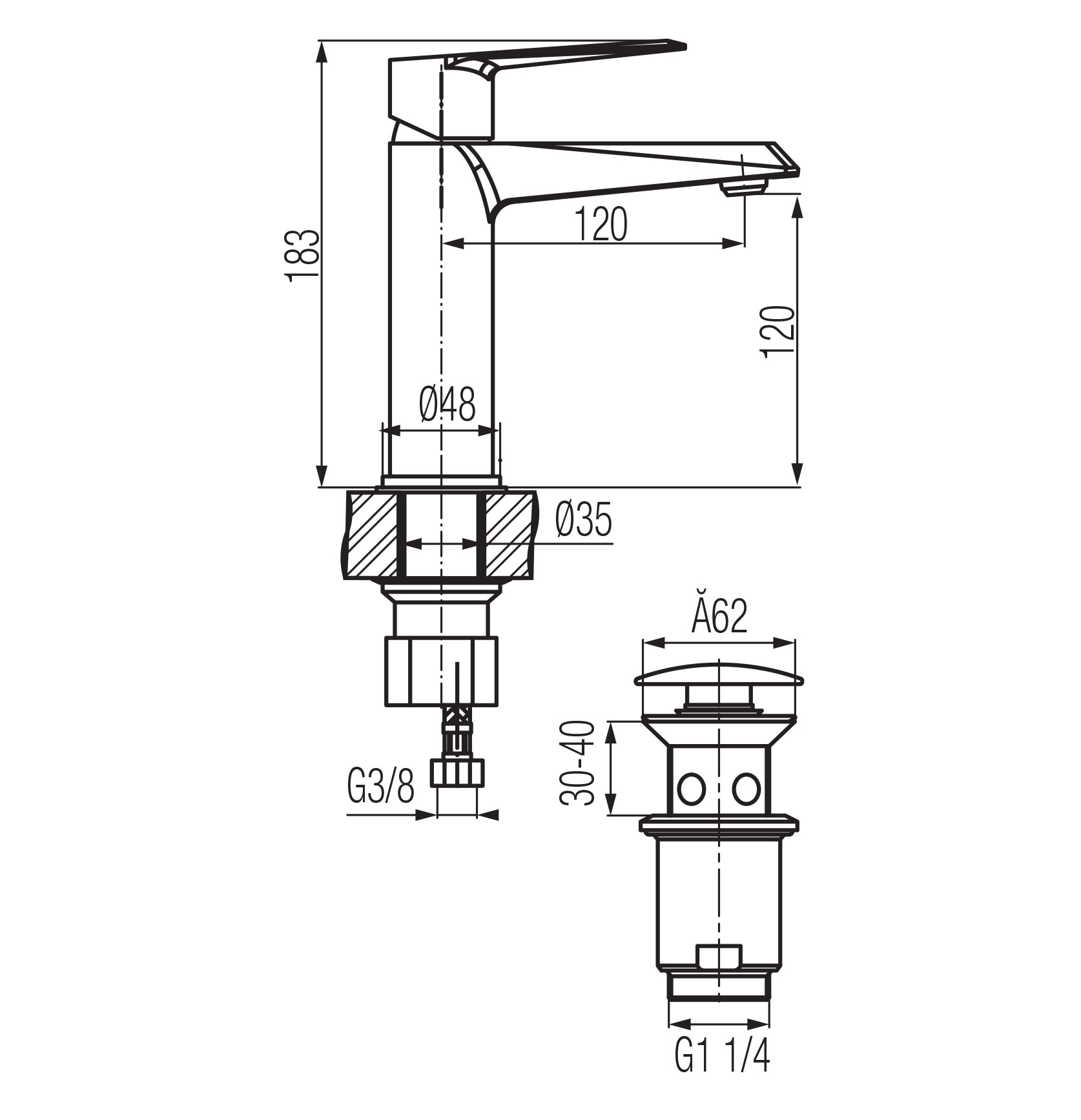 QUASAR Bateria umywalkowa stojąca z automatycznym korkiem spustowym