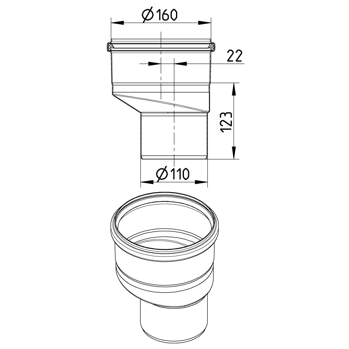 Redukcja zmiana średnic DN =160 kielichx110 mm bosy, stal kwasoodporna