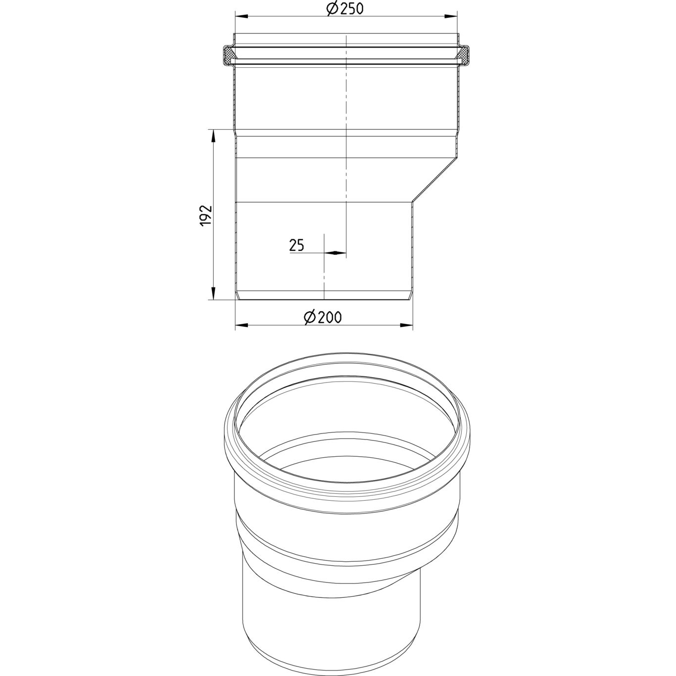 Redukcja zmiana średnic DN =250 kielichx200 mm bosy, stal kwasoodporna