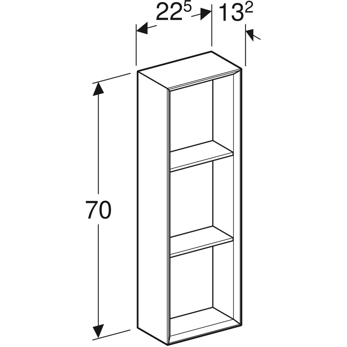 Regał iCon prostokątny: 22.5 cm x 70 cm x 13.2 cm, Biały / Lakierowany na wysoki połysk