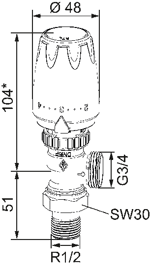 Regulacja ogrzewania podłogowego RTL-DX DN15, kątowy