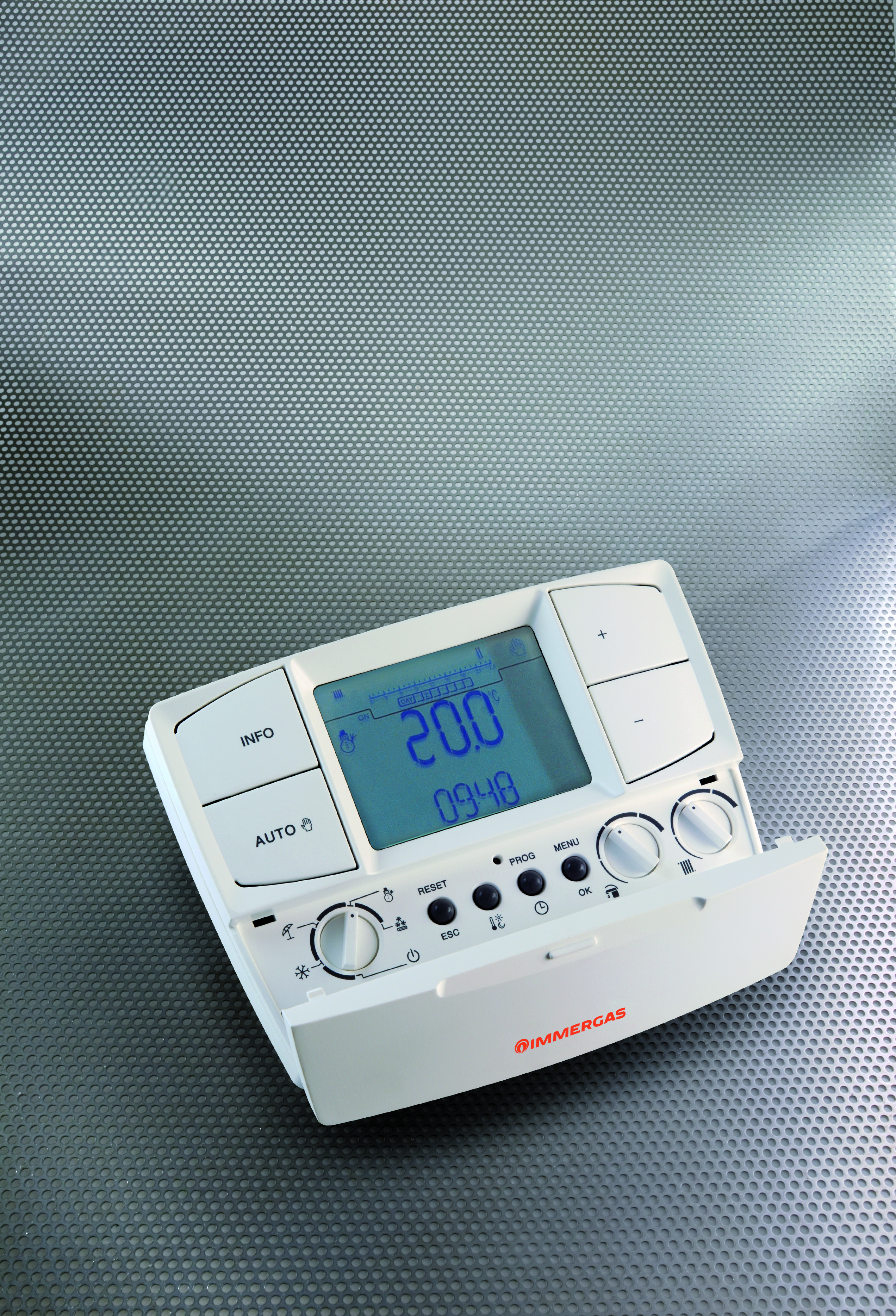 Sterownik cyfrowy, który przejmuje funkcje sterowania pompą ciepła, działa również jako termostat pokojowy z programowaniem tygodniowym C.O. i C.W.U. Posiada podświetlenie wyświetlacza. Temperatura maksymalna pracy: 40 °C