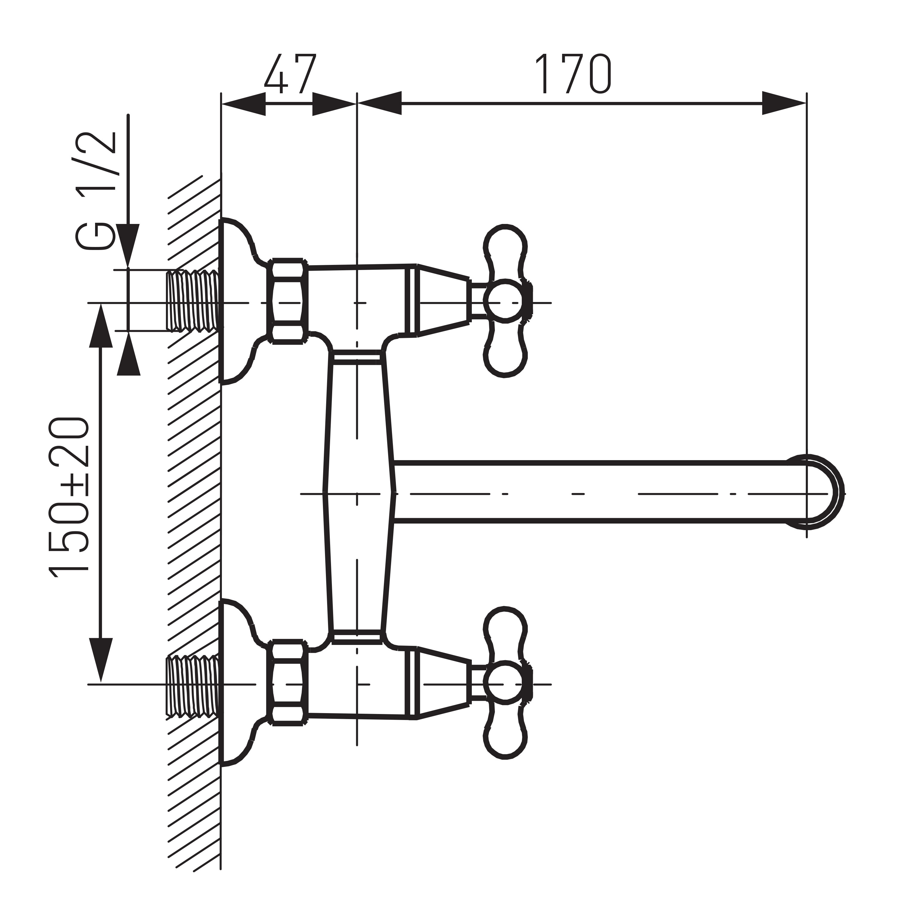 RETRO NEW bateria zlewozmywakowa ścienna, chrom