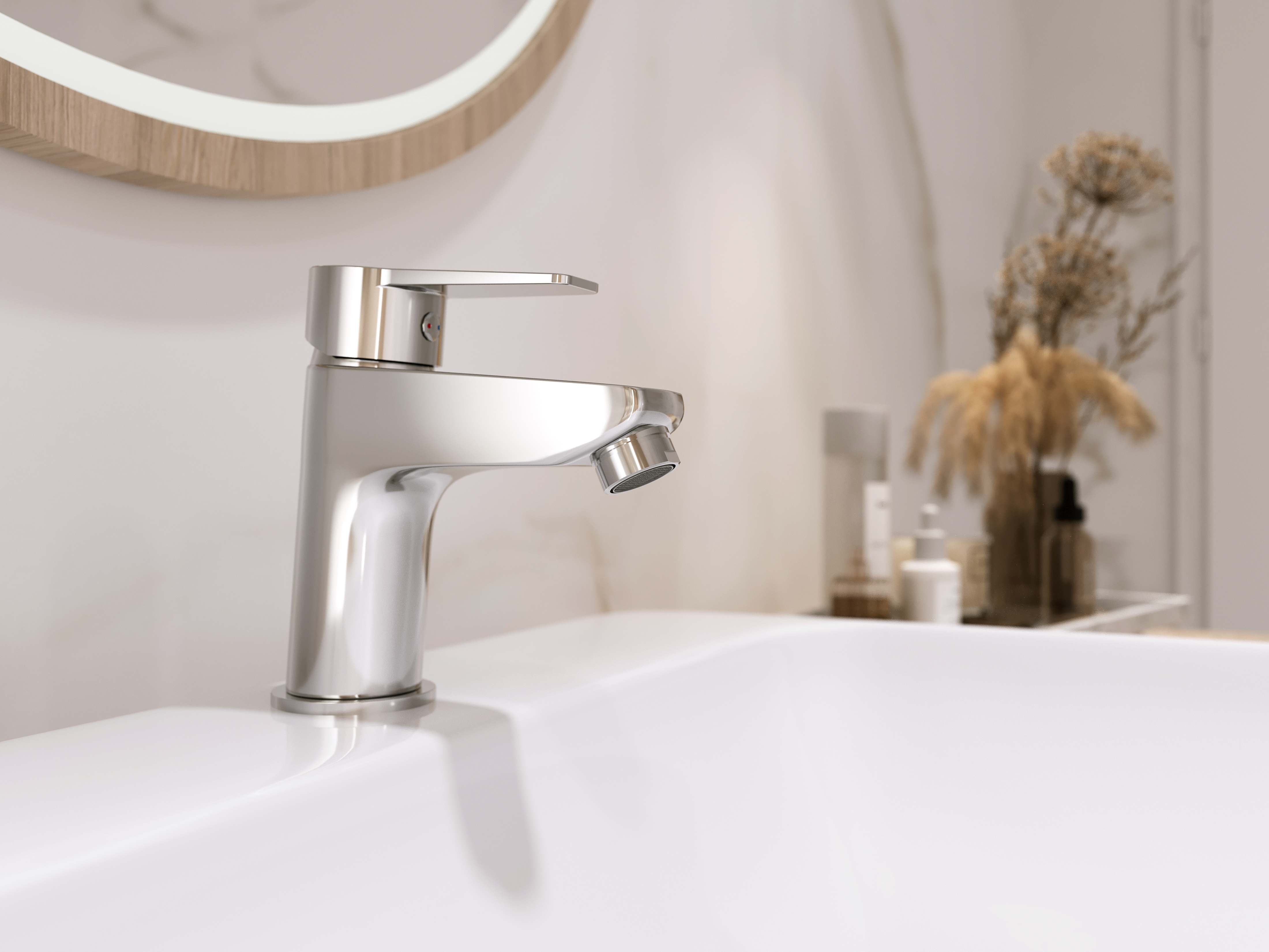 Uniwersalna forma baterii podkreślona przez miękkie, opływowe linie zestawiona została z lśniącą chromowaną powłoką. Taki design sprawia, że podobnie jak cała kolekcja RITTO, świetnie odnajdzie się ona w każdym łazienkowym wnętrzu, także w stylistyce klasycznej. Płaski, minimalistyczny uchwyt oraz funkcjonalny korek click-clack gwarantują zadowolenie z użytkowania.