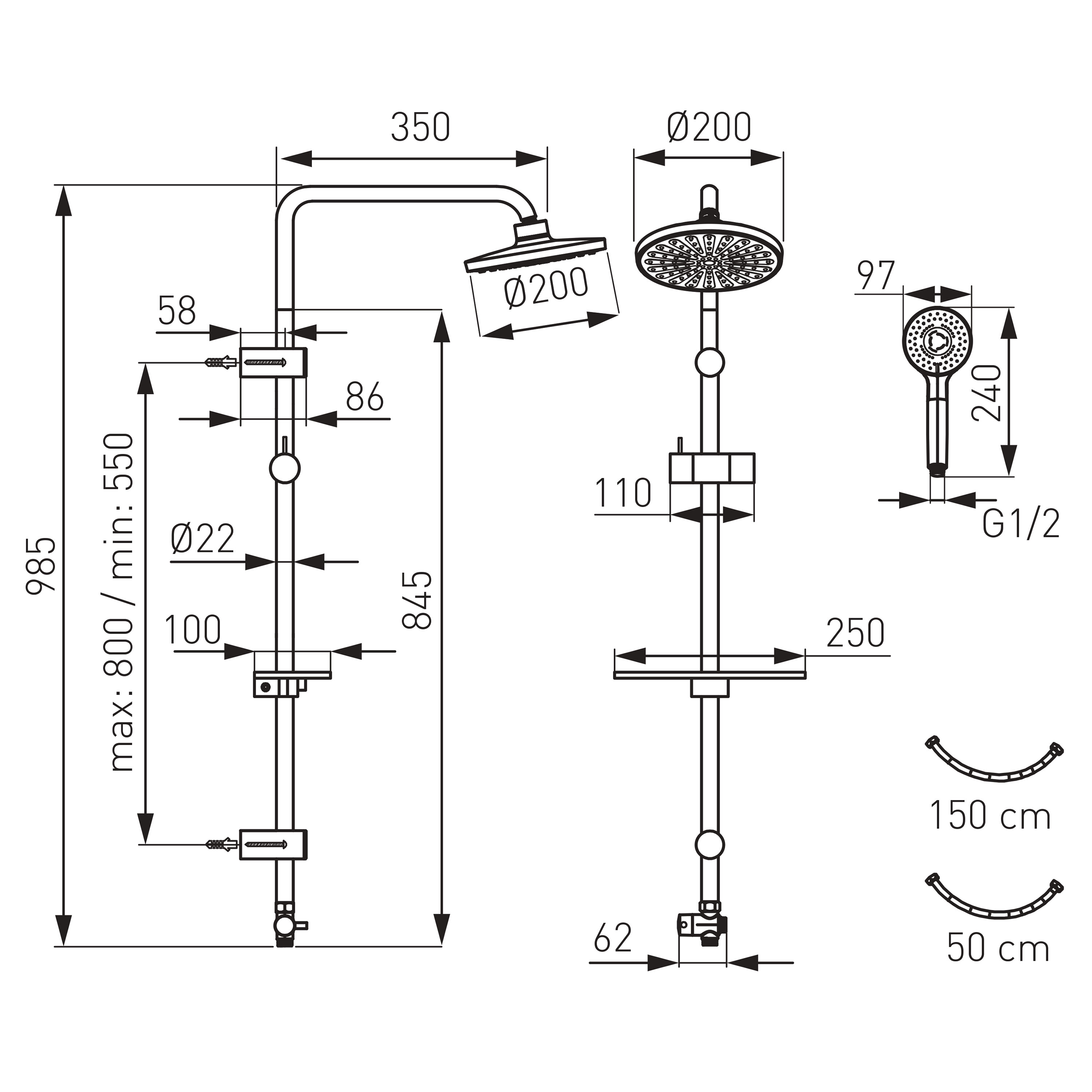 - Długość węża natryskowego: 1500 mm