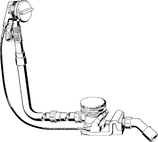 Rotaplex Trio-komplet odpływowo-przelewowy Visign RT3 nr wzoru 6141.71 DN: 40/50 długość cięgna Bowdena: 1070 L: 150–680 H: 180–480 wanna o długości niestandardowej do wanien z otworem odpływowym fi 90