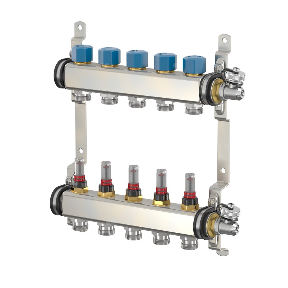 ROZDZIELACZ 1" ZE STALI NIERDZEWNEJ 10 OBWODÓW Z ROTAMETREM