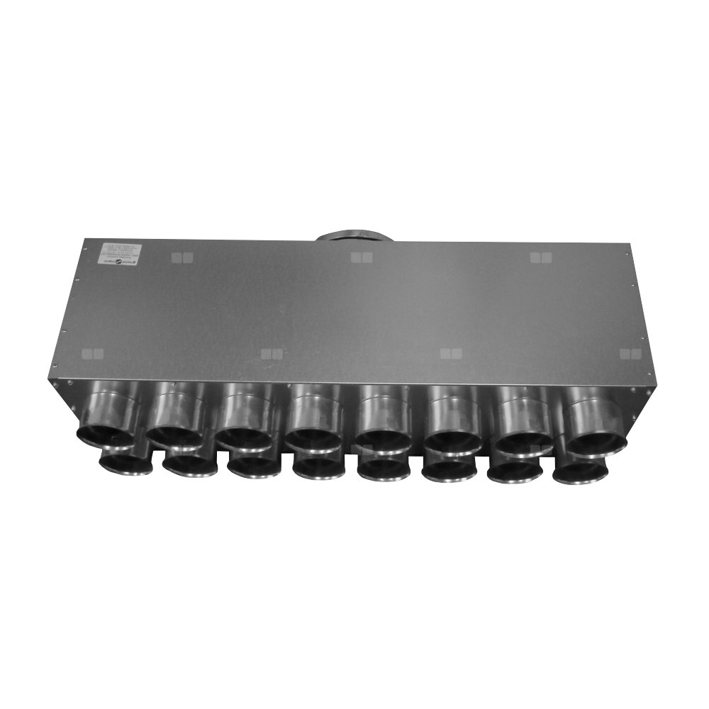 Rozdzielacze przelotowe przeznaczone do układów wentylacji, gdzie możliwe jest rozprowadzenie powietrza po całym budynku z jednego miejsca. Króćce w tych rozdzielaczach osadzone są na wymiennym panelu, który po odkręceniu można przestawić na sąsiedni bok.
