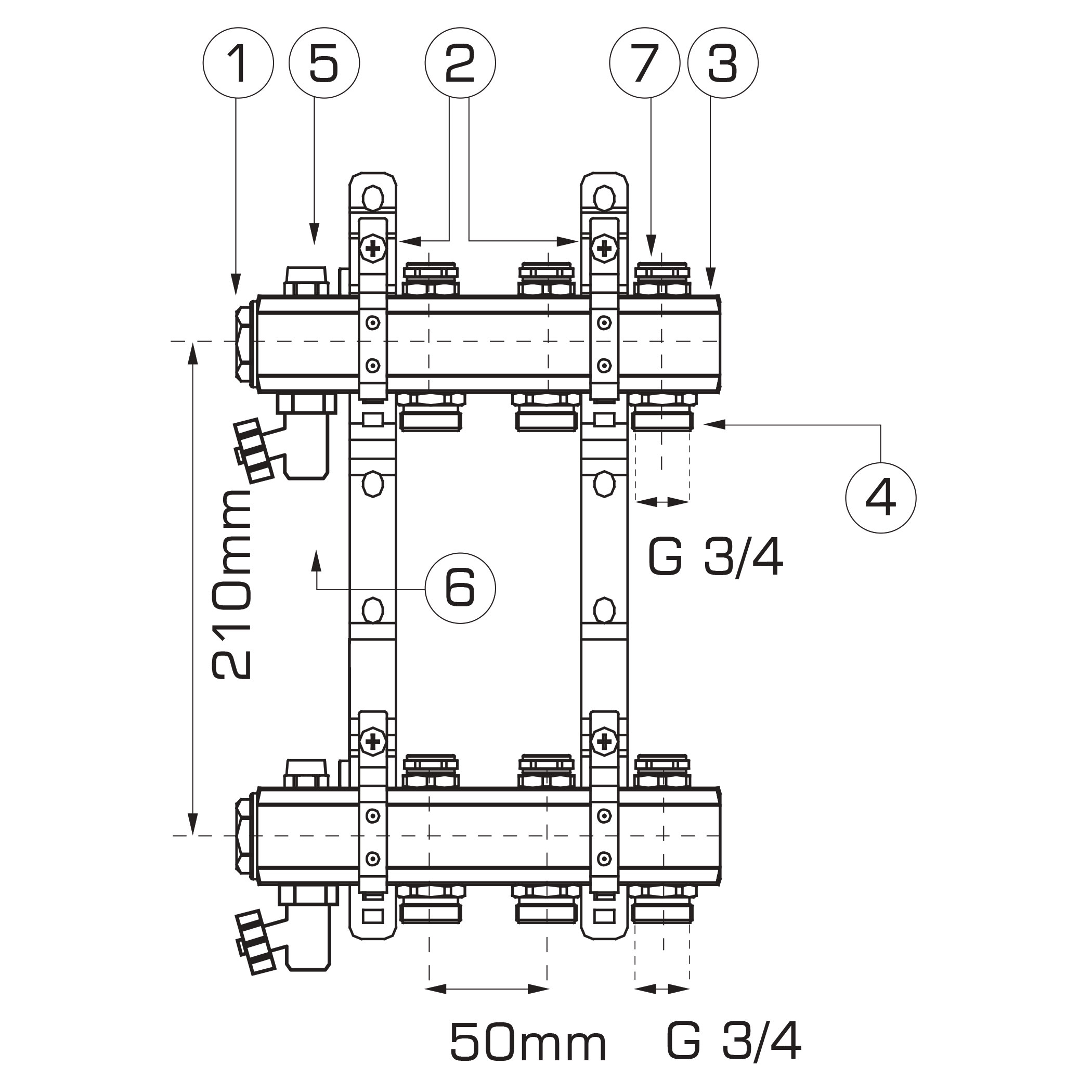Rozdzielacz 7-drogowy z zaworami odcinającymi obwody, standard