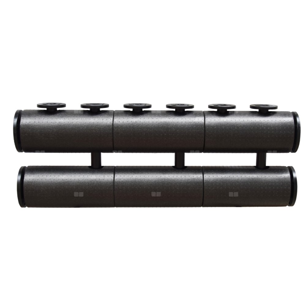 Dwukomorowy stalowy rozdzielacz C2 125, C2 150, 2 lub 3 obwodowy został stworzony w celu ułatwienia montażu grup pompowych DN 25, 32, 40, 50. Fabrycznie wyposażony jest w izolację EPP oraz posiada przyłącze kołnierzowe DN 50 po stronie instalacyjnej. Rozdzielacz zawiera 2 uszczelki o średnicy dostosowanej do średnicy przyłącza rozdzielacza oraz komplet 8 śrub montażowych do łączenia z kolejnym rozdzielaczem lub sprzęgłem hydraulicznym. Na życzenie możemy wykonać rozdzielacze o innym przyłączu.