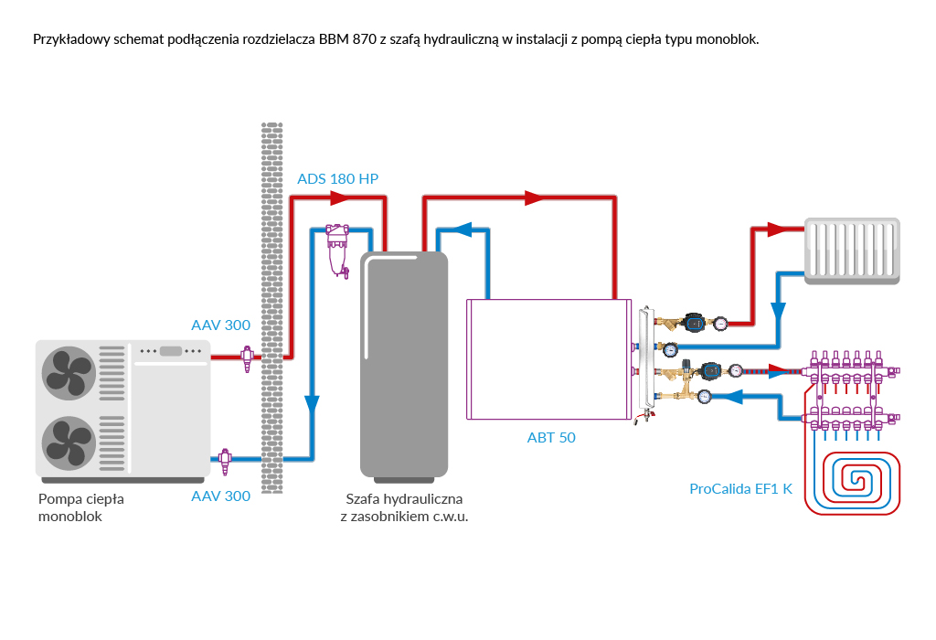Łączy dwa obiegi instalacji/dwie grupy pompowe BPS ze źródłem ciepła/chłodu lub buforem.