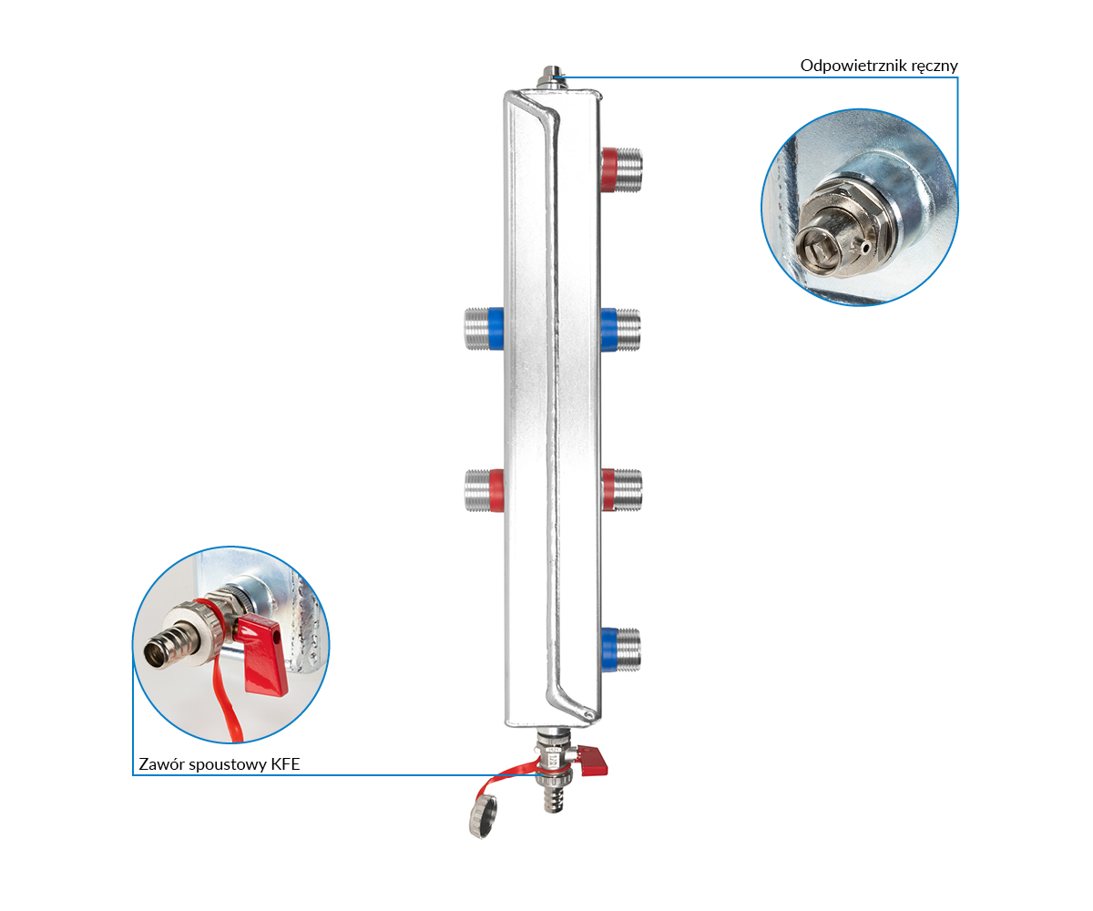 Odpowietrznik ręczny pozwala usunąć powietrze wytrącone w rozdzielaczu.