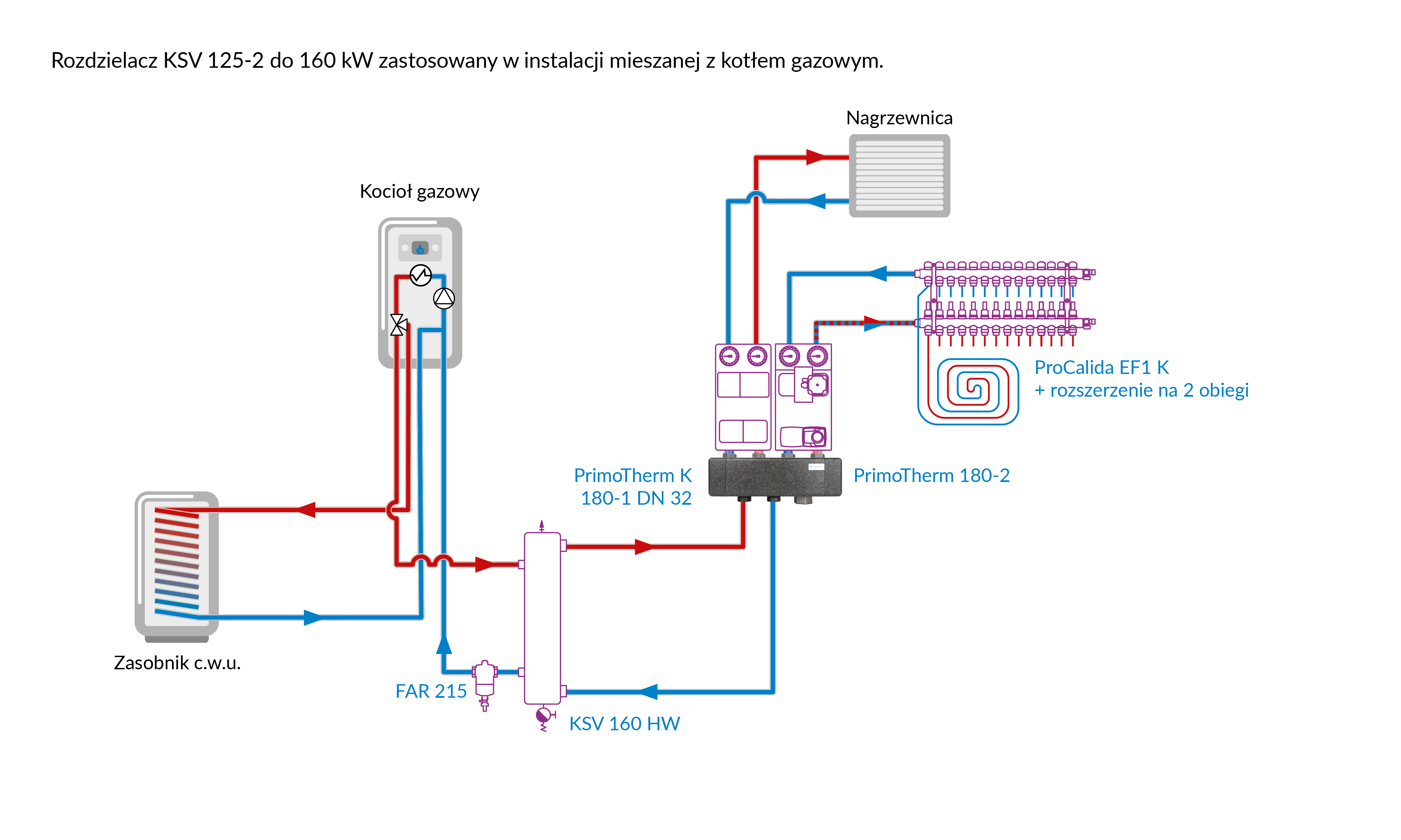 Stosowany w instalacjach grzewczych i chłodzących.Montowany na ścianie pomiędzy źródłem ciepła lub chłodu a grupami pompowymi.