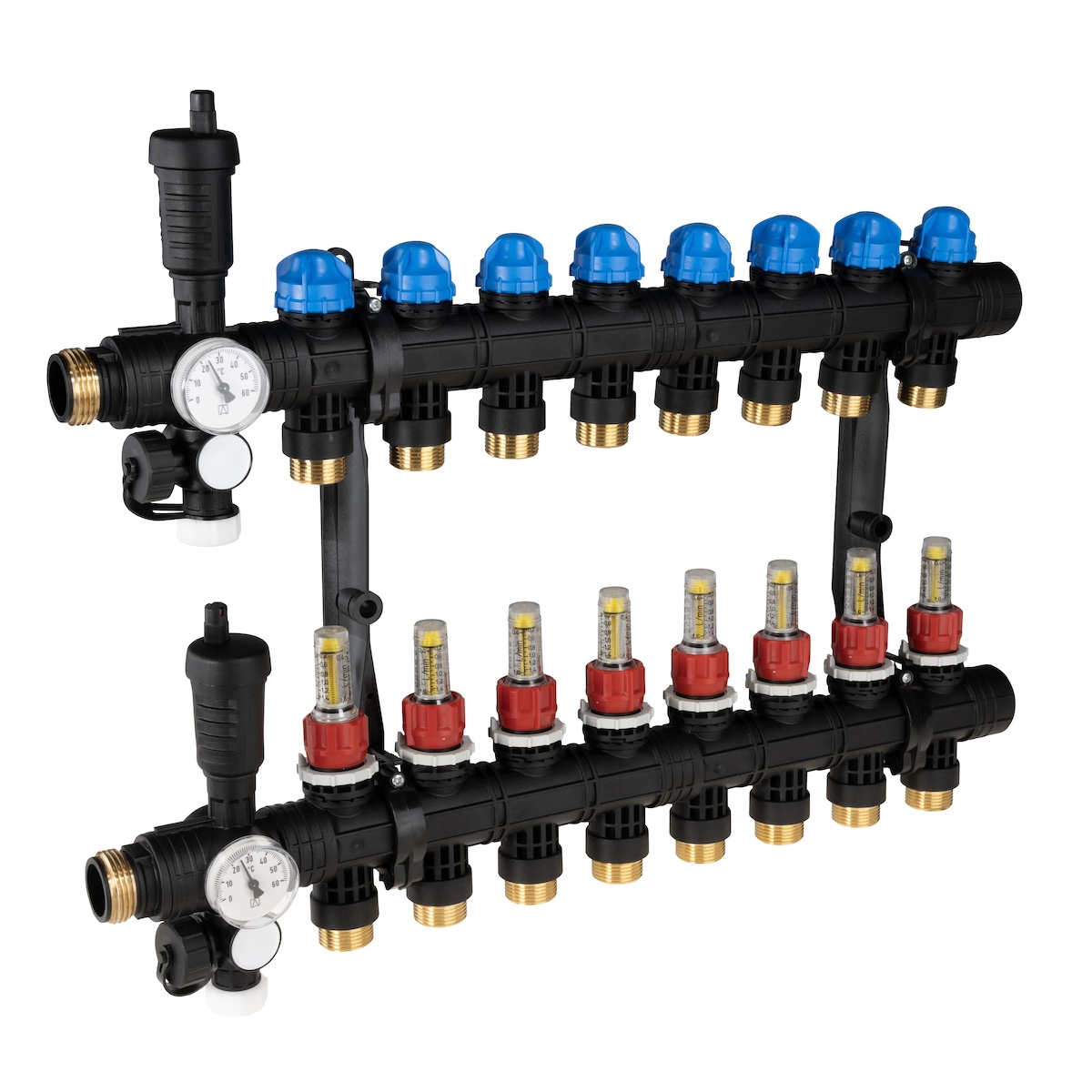 Rozdzielacz do ogrzewania podłogowego AFRISO ProCalida EF1 8-obieg. poliamid GZ 1'' x euroconus 3/4''
