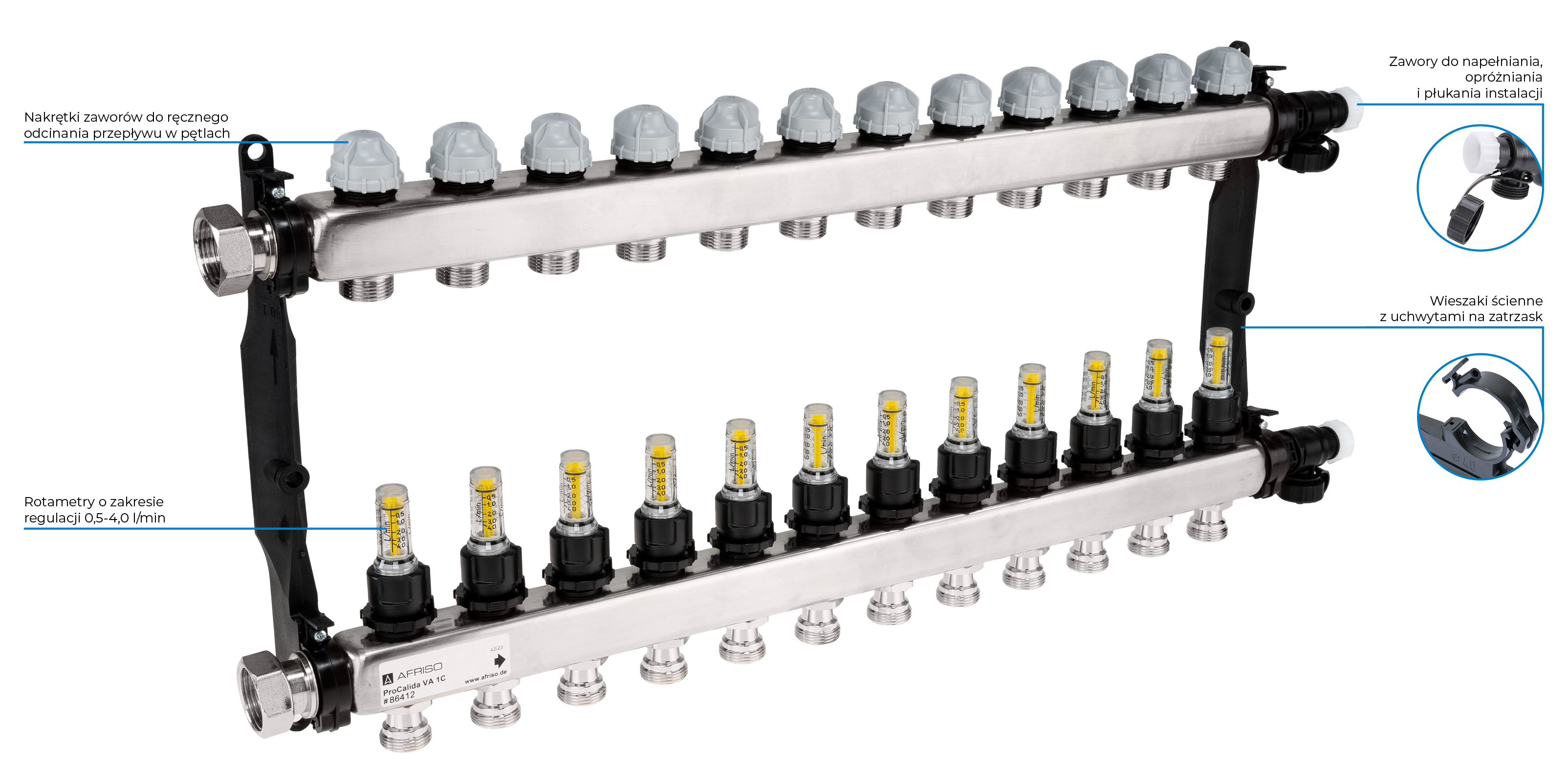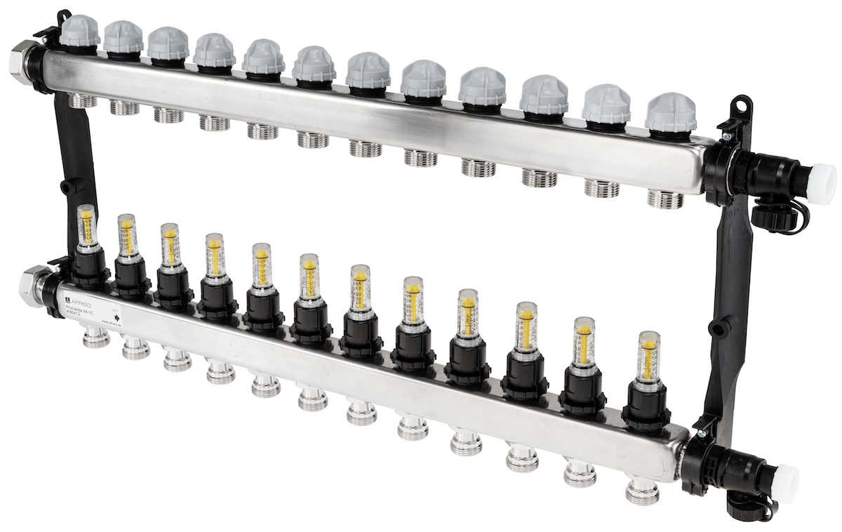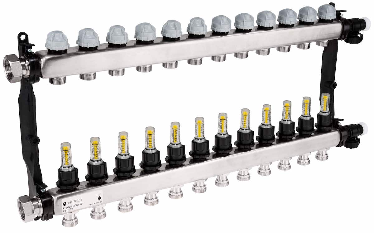 Rozdzielacz do ogrzewania podłogowego AFRISO ProCalida VA 1C 12-obieg. stal nierdzewna GZ 1'' x euroconus 3/4''