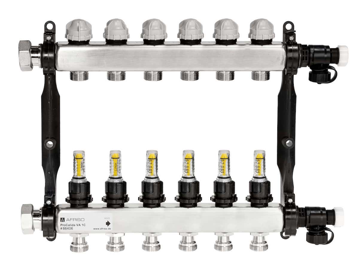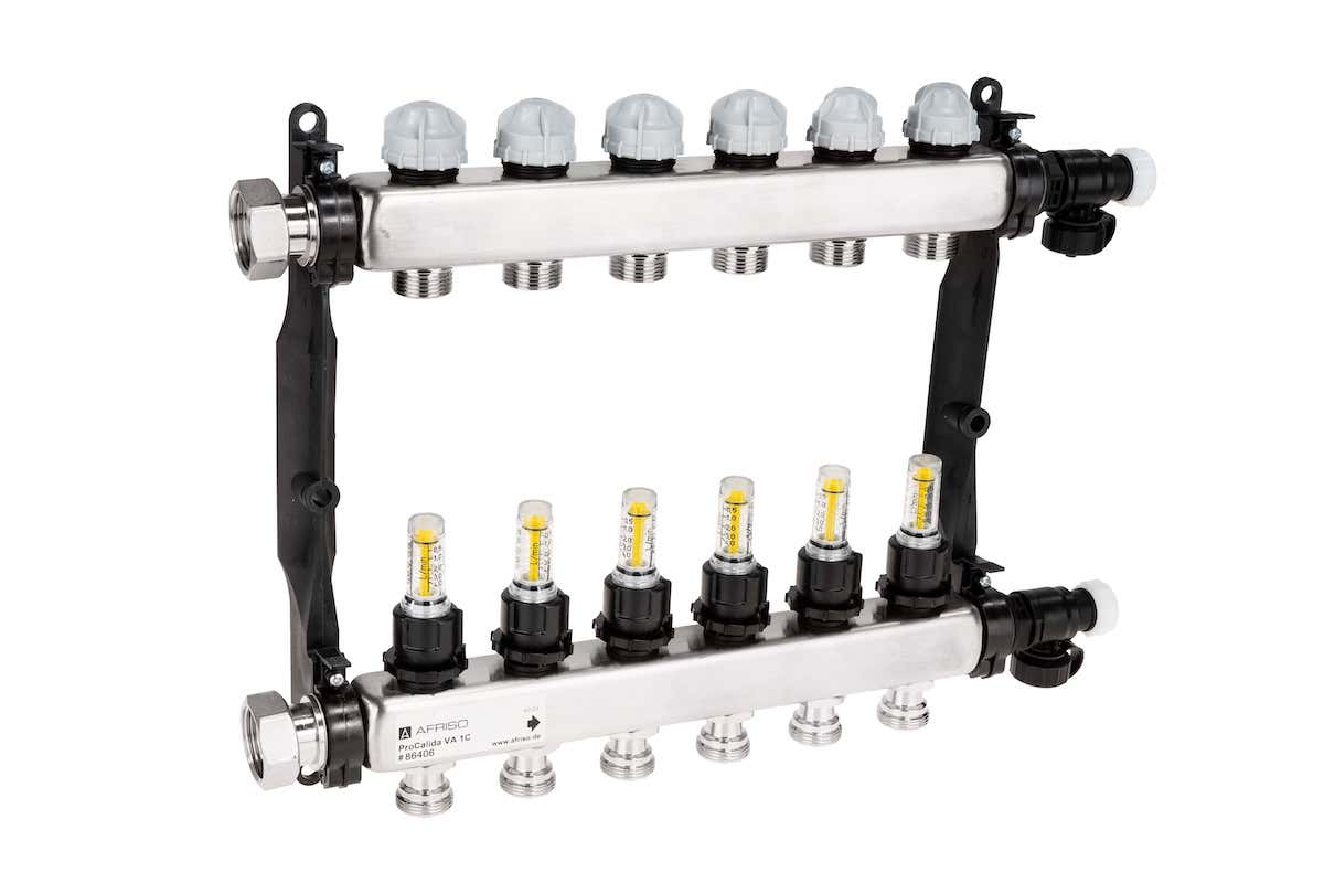 Rozdzielacz do ogrzewania podłogowego AFRISO ProCalida VA 1C 6-obieg. stal nierdzewna GZ 1'' x euroconus 3/4''