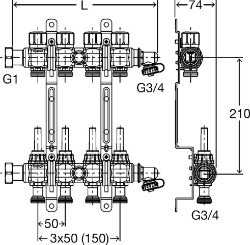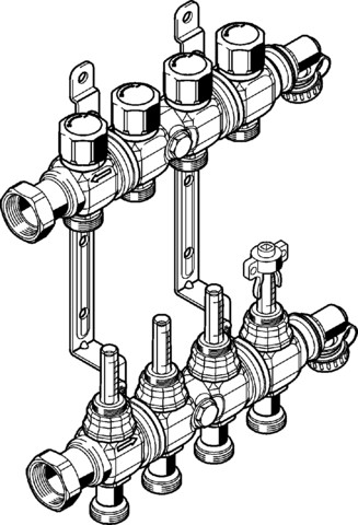 Rozdzielacz do ogrzewania podłogowego VIEGA 1010 12-obieg. stal nierdzewna gw DN 25 x gw 1'' + przepływomierz + zawór przy przyłączu
