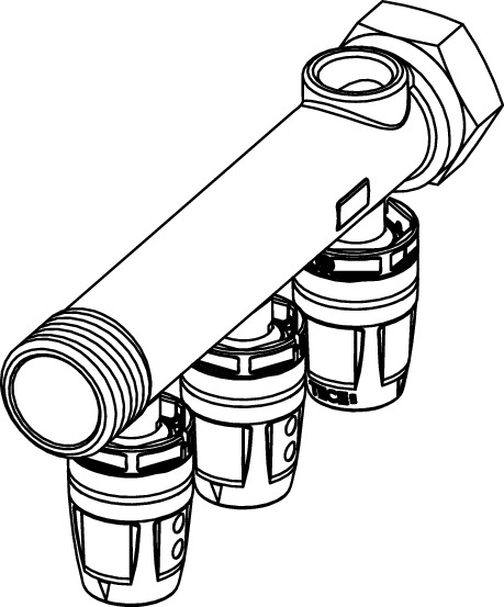 Rozdzielacz hydrauliczny TECE logo mosiądz GZ x GW 3/4'', odgałęzień: 3 (DN16)