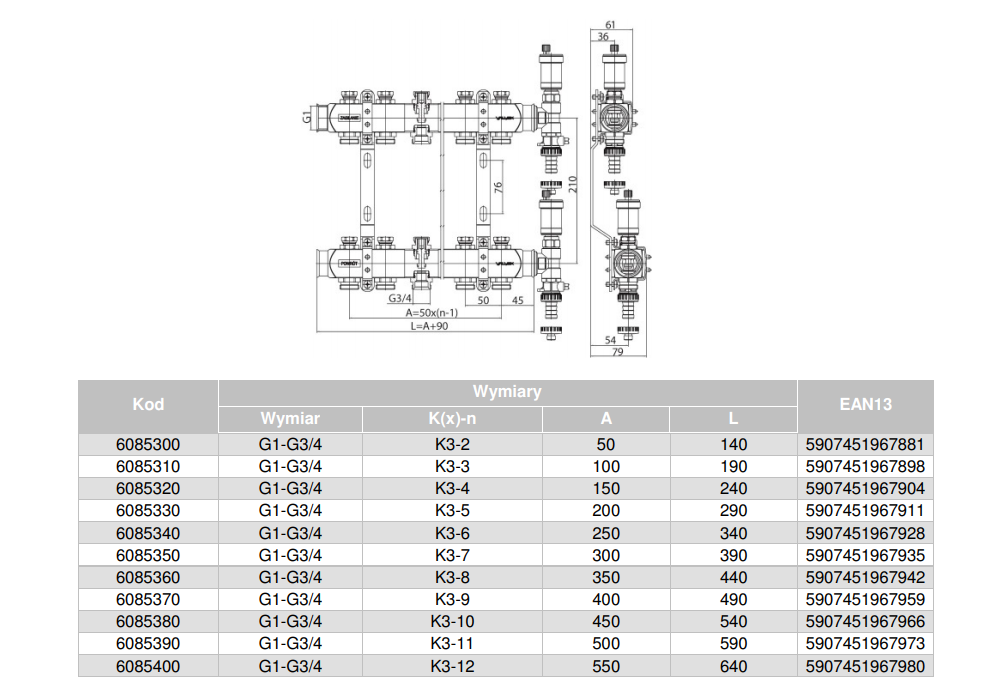 Rozdzielacz hydrauliczny VALVEX Base K3-12 stal nierdzewna, odgałęzień: 12 (3/4''), do CO
