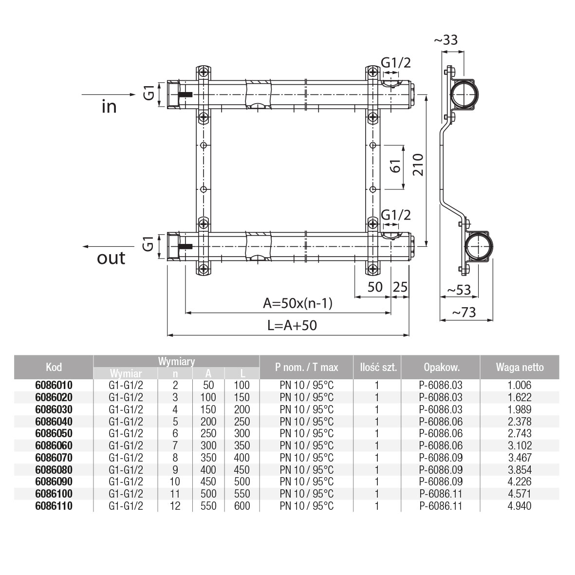 Rozdzielacz hydrauliczny VALVEX Proff K1-10 mosiądz GW 1'', odgałęzień: 10 (1''), do CO