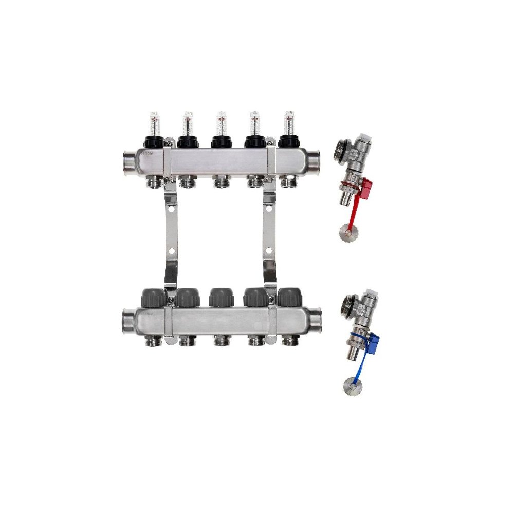 Rozdzielacz stosowany jest w płaszczyznowych układach grzewczych (podłogowych i ściennych). Wyposażony w przepływomierze pozwala dokładnie wyregulować każdą instalację pod kątem wyrównania oporów przepływu. Zastosowanie zaworów termostatycznych umożliwia regulację temperatury poszczególnych pomieszczeń (przy współpracy z elektrycznymi siłownikami i termostatami). Cena za 1szt.