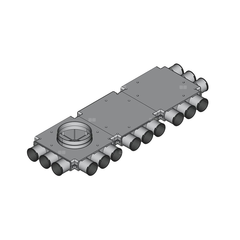 Rozdzielacz końcowy TopFlex DN200/DN75 x 15 / 3-modułowy - montaż na stropie