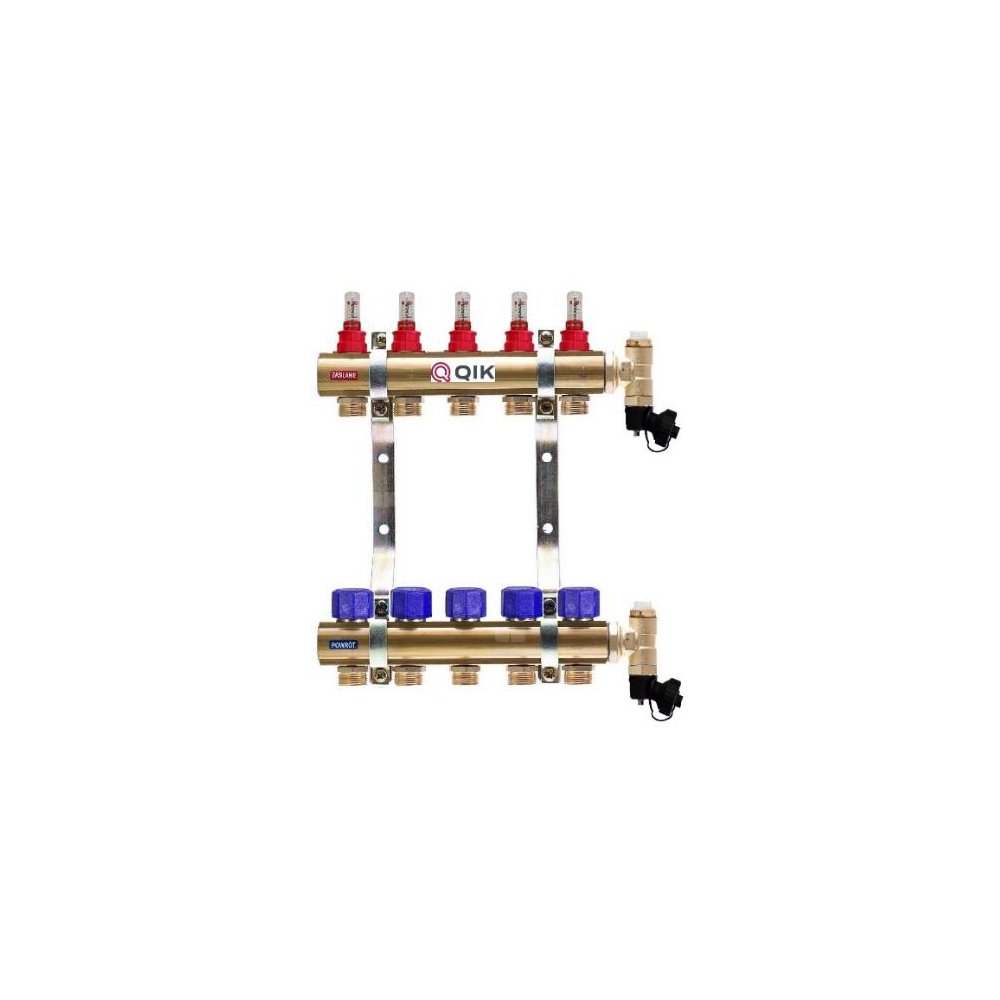 Rozdzielacze ogrzewania podłogowego, przeznaczone do rozdzielenia medium grzew­czego na poszczególne pętle. Belki mosiężne profilowe 1" o wysokości profilu 39mm, w skład kompletu wchodzi: • rotametry na belce zasilającej o zakresie przepływu 0-5 l/min • termostatyczne zawory regulacyjne ręczne z pokrętłem, pod siłowniki M30x1,5 • uchwyty montażowe z płaskownika o grubości 3mm z amortyzatorami - 2 szt. • nyple GZ 3/4" z o-ringiem o rozstawie 50mm • korki 1" pod klucz z o-ringiem - 2 szt. • zawory spustowe - 2 szt. • odpowietrzniki ręczne GW 1/2 - 2szt. Cenę podano za 1 szt.