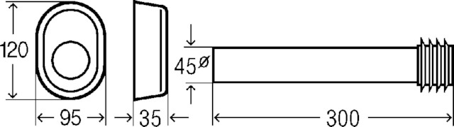 Zestaw rury spłuczkowej. Przeznaczenie: połączenie między łukiem podtynkowym rury spłuczkowej z WC stojącym, tworzywo sztuczne, nr wzoru 8310.79, nr kat. 495 169, L: 300 Ø: 45