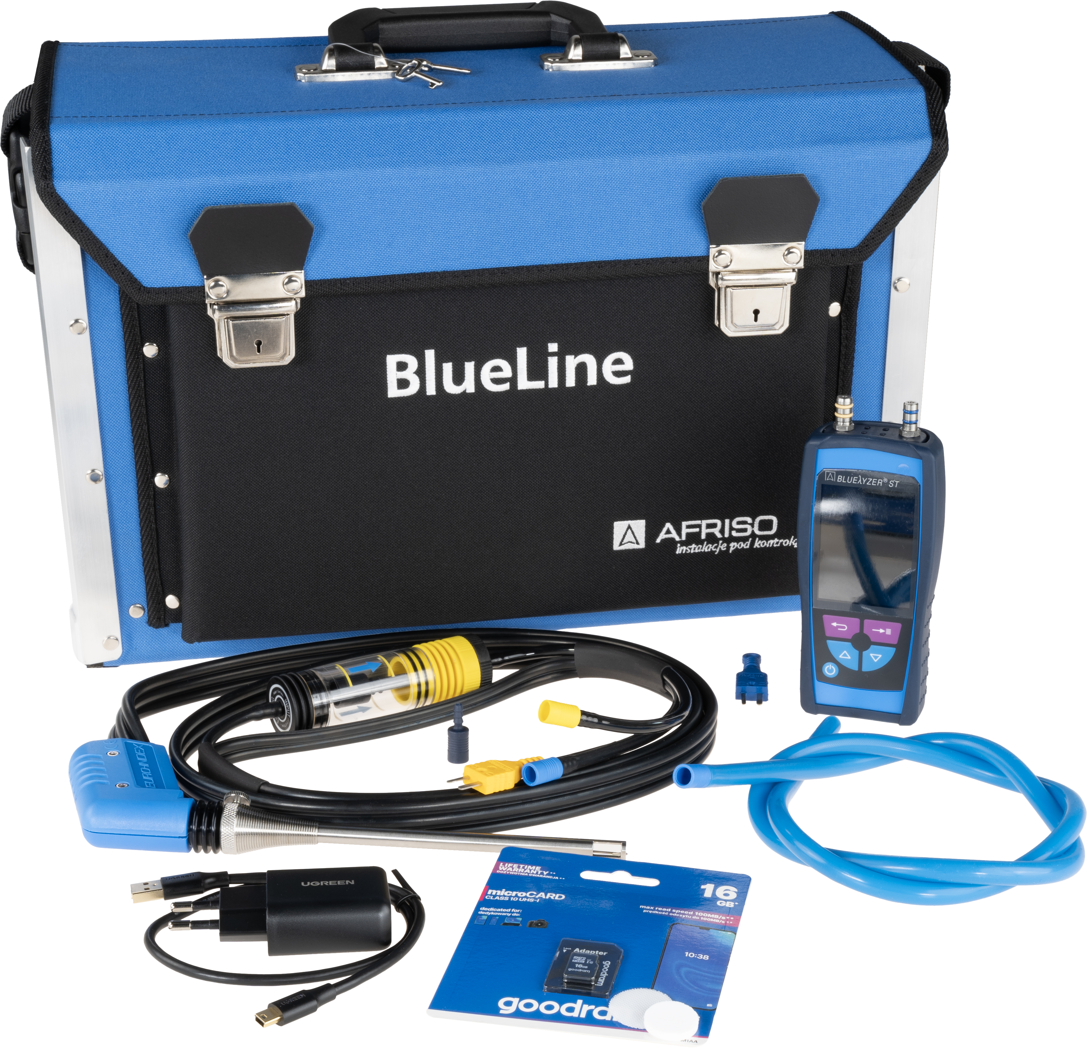 Sensor O2, CO, pomiar ciągu kominowego AFRISO Bluelyzer ST standard, bez drukarki, z walizką