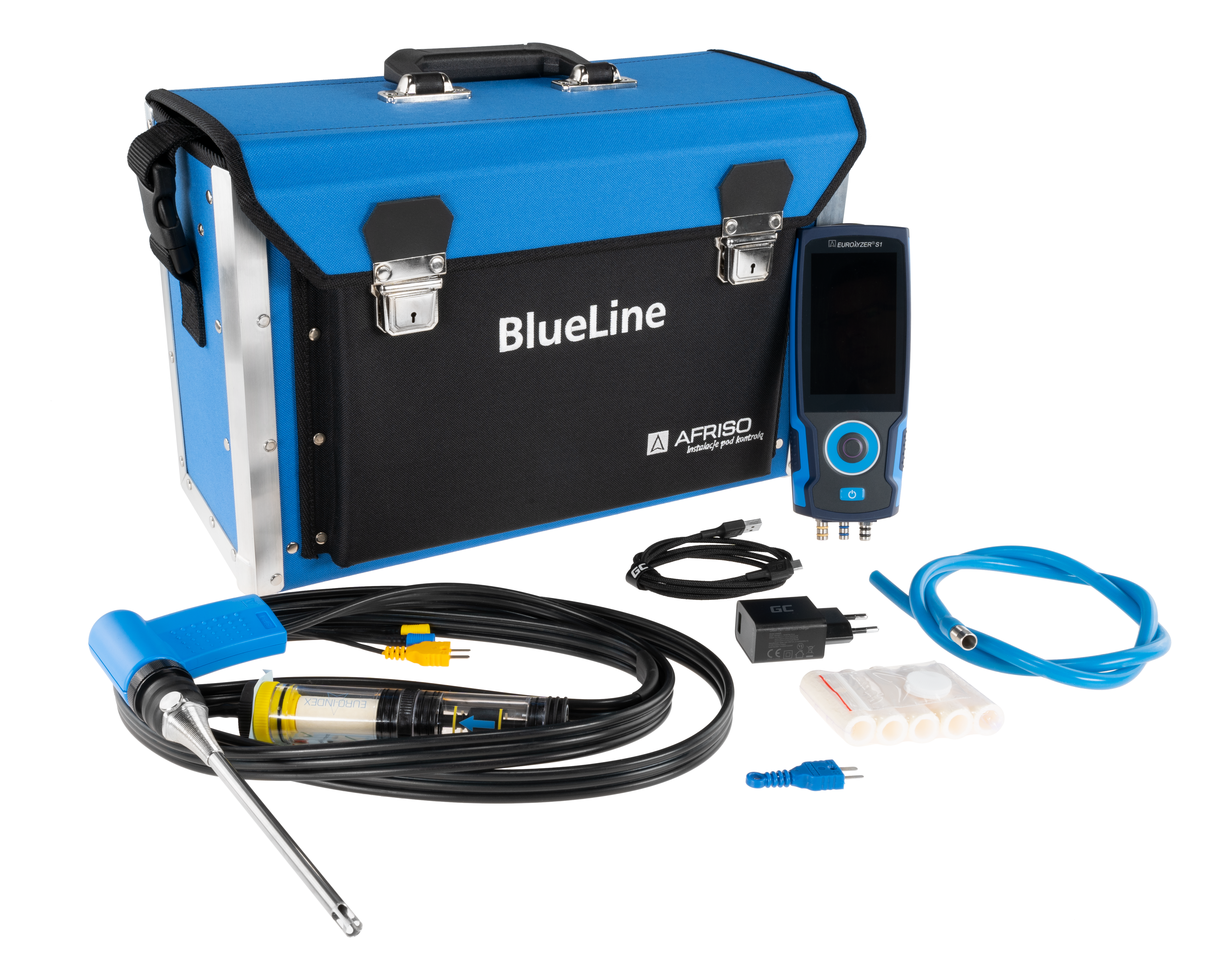 Sensor O2, CO/H2, pomiar ciągu kominowego, pomiar ciśnienia, analizator spalin AFRISO EUROLYZER S1 pro, bez drukarki, z walizką