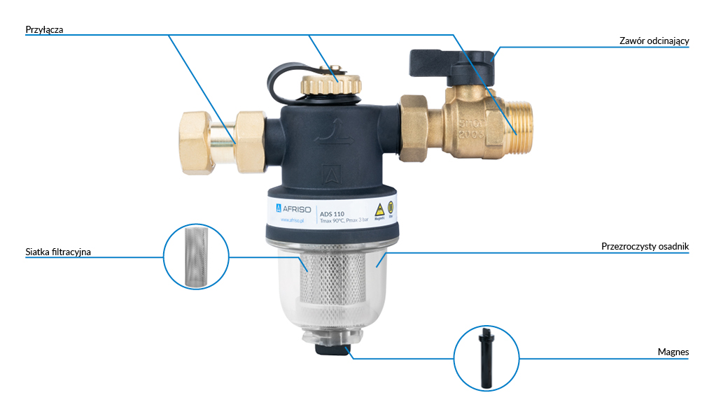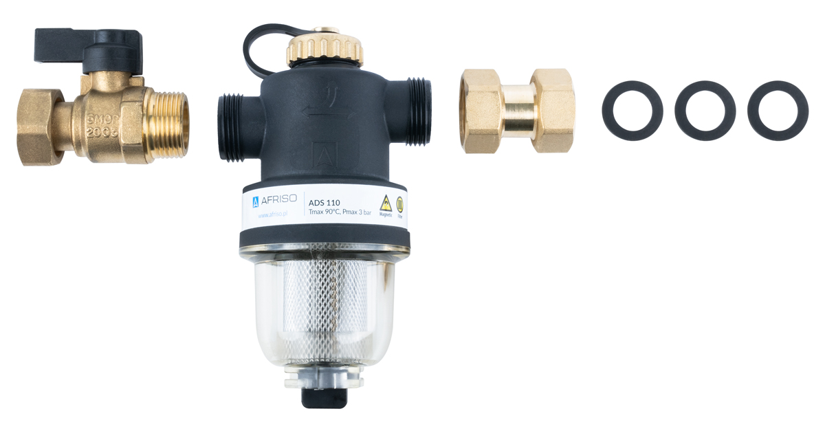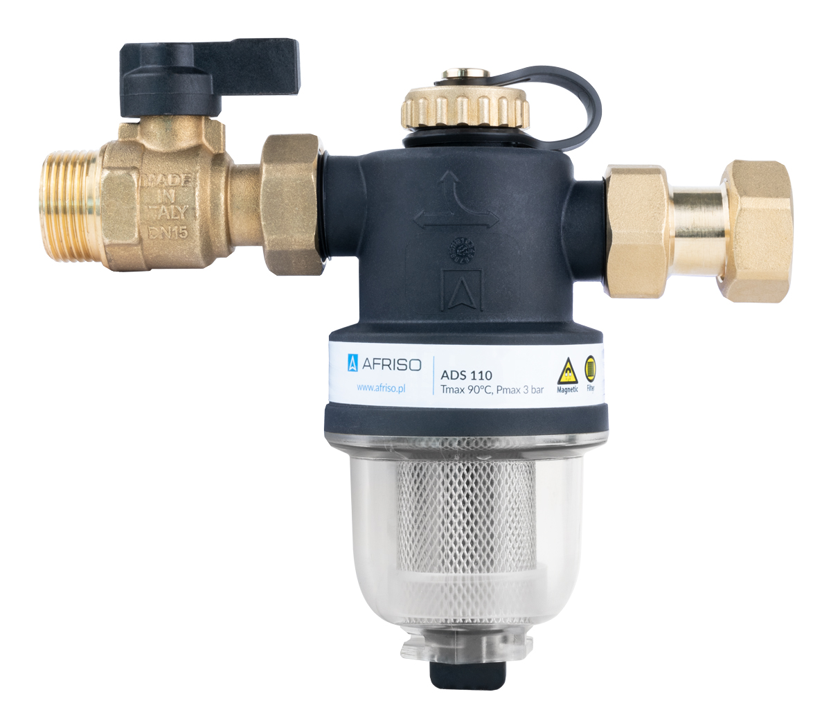 Separator AFRISO ADS 110, do C.O., 3 bar / 90'C, 3/4'' (GW), z wkładem magnesowymInstalacje i źródła ciepła