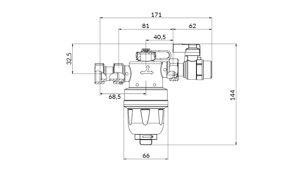 Stosowany w instalacjach grzewczych i chłodzących.Montowany przed źródłem ciepła na powrocie z instalacji.
