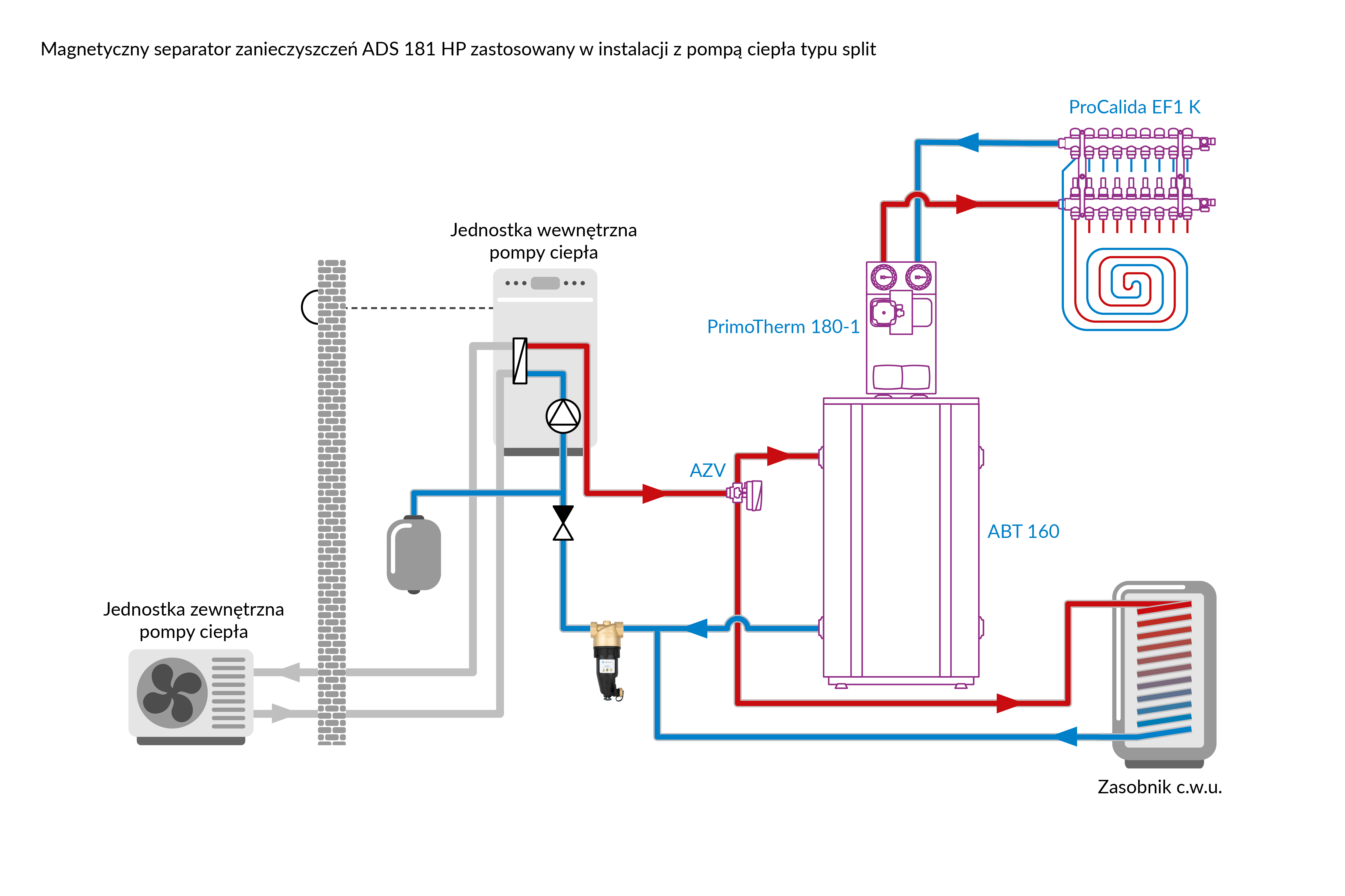 Stosowany w instalacjach grzewczych i chłodzących.Montowany przed źródłem ciepła/chłodu na powrocie z instalacji.
