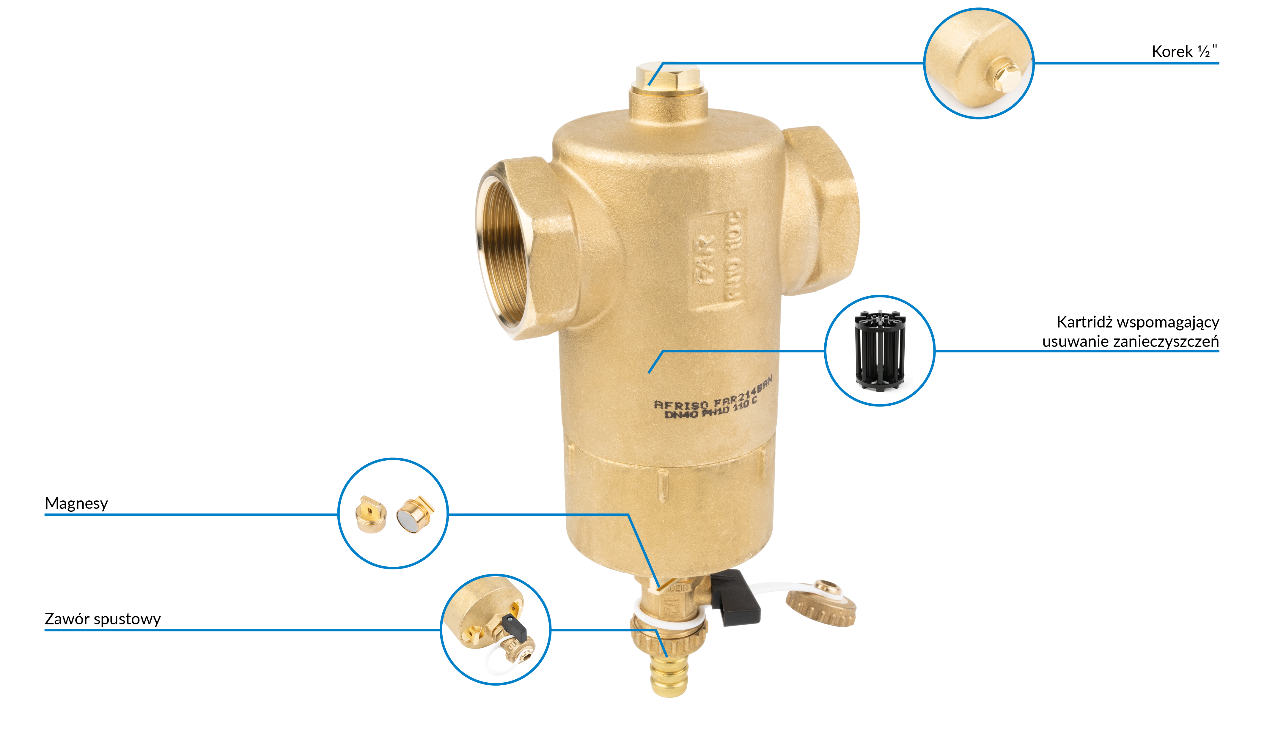 Stosowany w instalacjach grzewczych i chłodzących.Montowany na powrocie z instalacji przed źródłem.