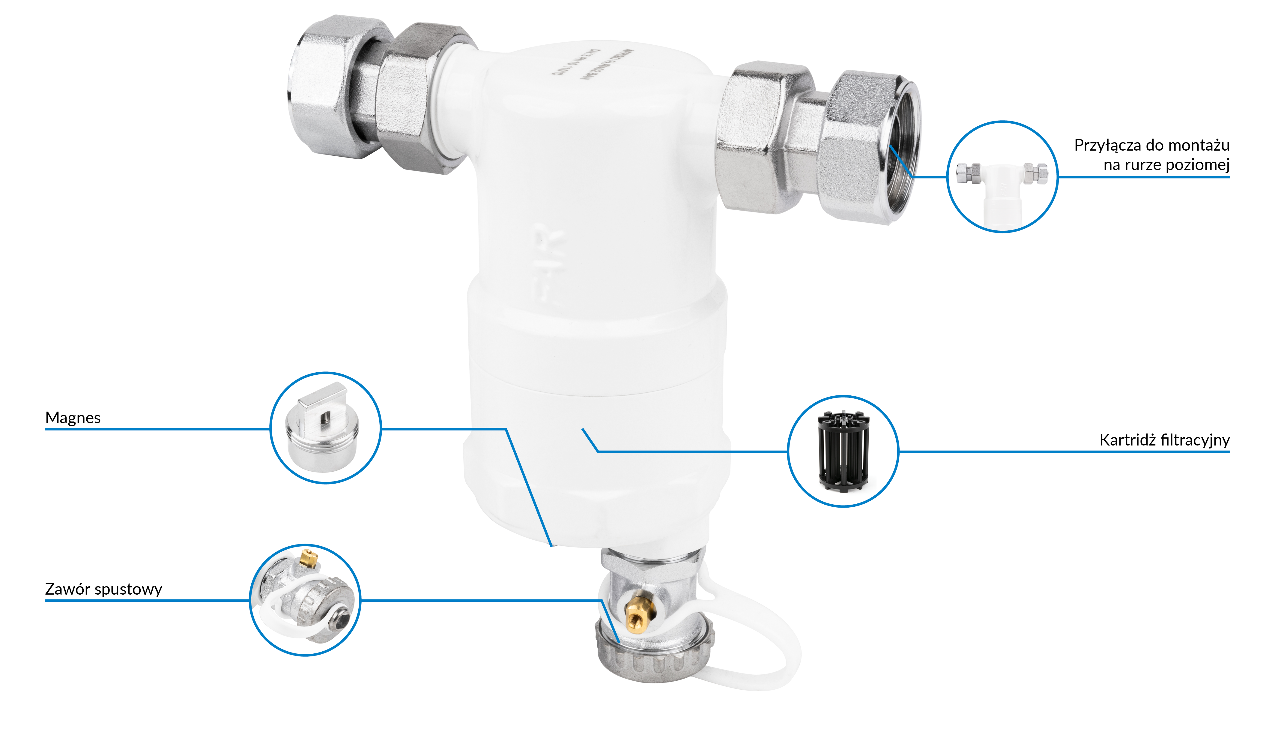 Zawór spustowy usuwa zanieczyszczenia wytrącone z medium.