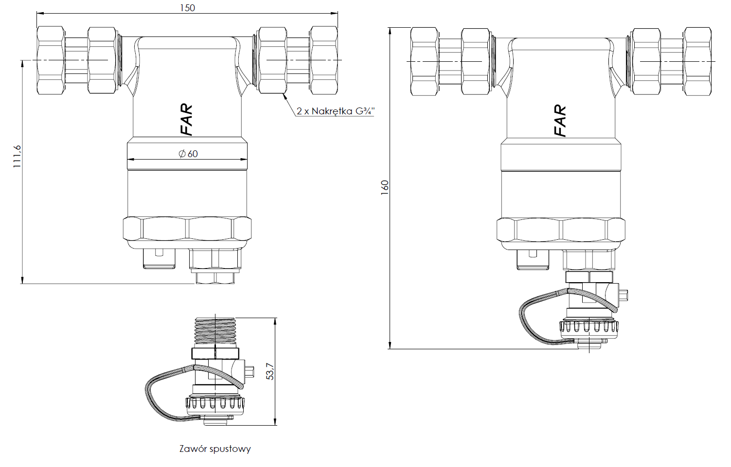 Separator AFRISO FAR 402, do C.O., 10 bar / 110'C, 3/4'' (GW), z wkładem magnesowymInstalacje i źródła ciepła