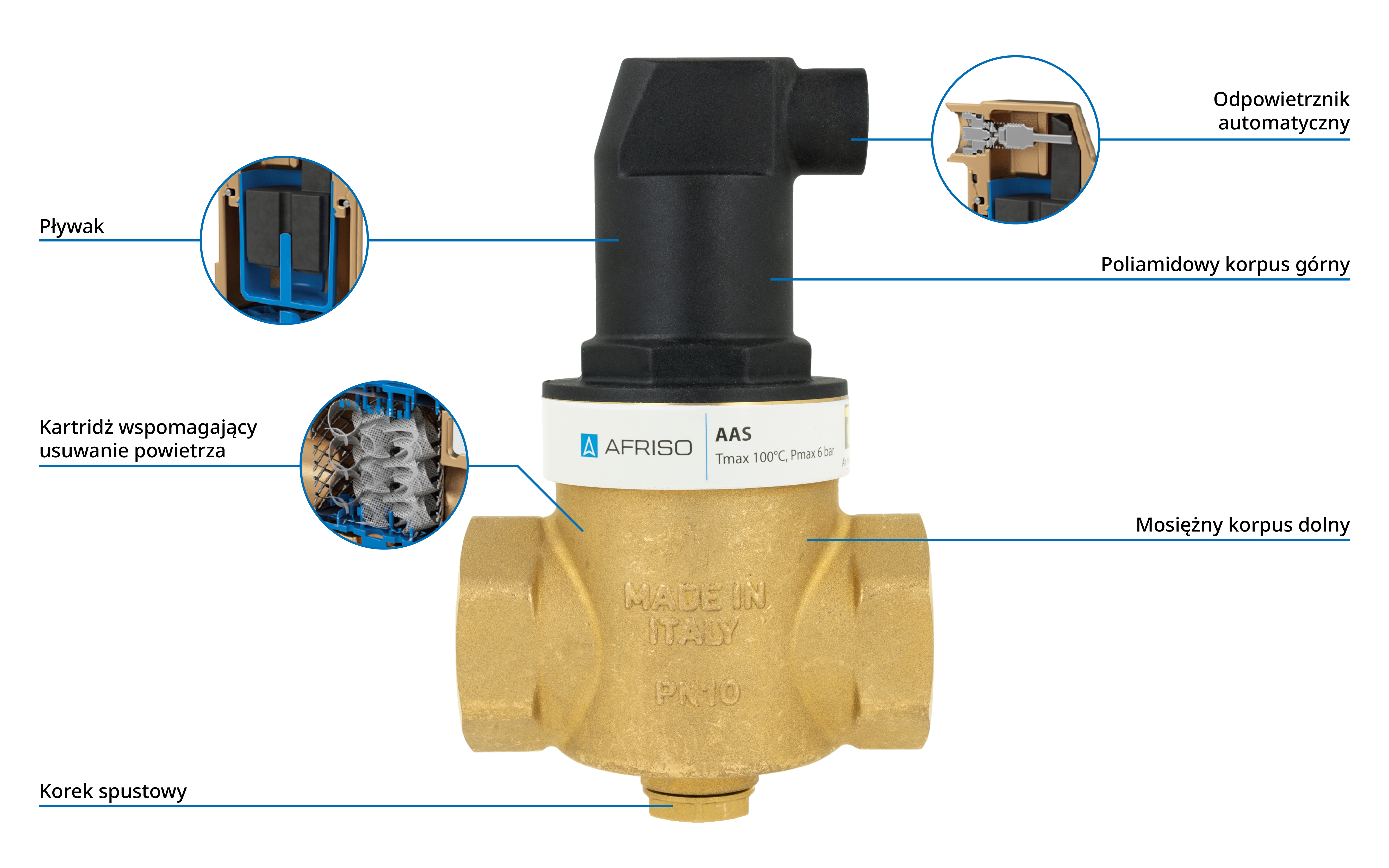 Separator powietrza AAS 281, z odpowietrznikiem automatycznym, przyłącze stałe GW G1 1/4''