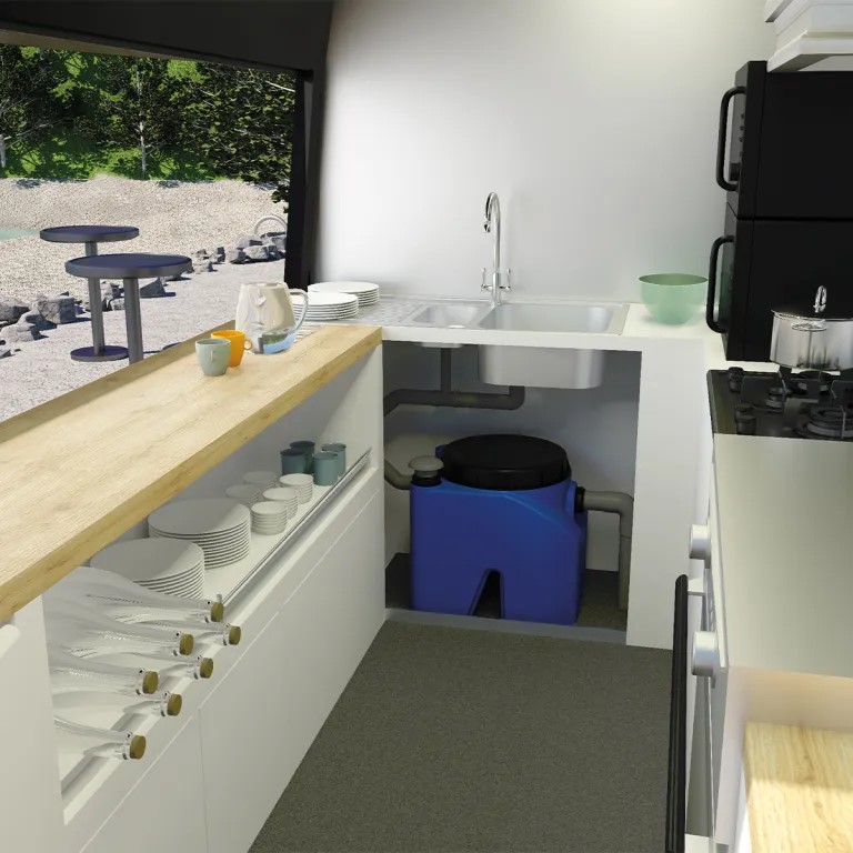 Sanigrease T24 to lekki separator tłuszczu przeznaczony do food trucków, mobilnych zmywarek lub okazjonalnego przygotowywania posiłków. Ze względu na niewielkie rozmiary może być zainstalowany w szafce pod zlewem. Z całkowitą pojemnością 24 litrów i maksymalną objętością tłuszczu 8 litrów, Sanigrease T24 musi być opróżniany codziennie. Wlot DN50, wylot DN50, waga 4 kg, materiał polietylen.