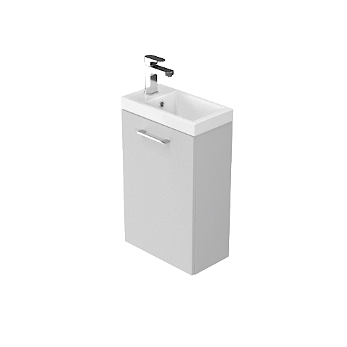 W skład zestawu wchodzą wisząca szafka podumywalkowa LARA SZARA 40 z umywalką COMO 40. Front oraz korpus szafki z płyty wiórowej 16 mm, lakierowanej w kolorze szarym. Szafka posiada drzwiczki o uniwersalnym montażu z chromowanym uchwytem. Mebel do samodzielnego montażu.