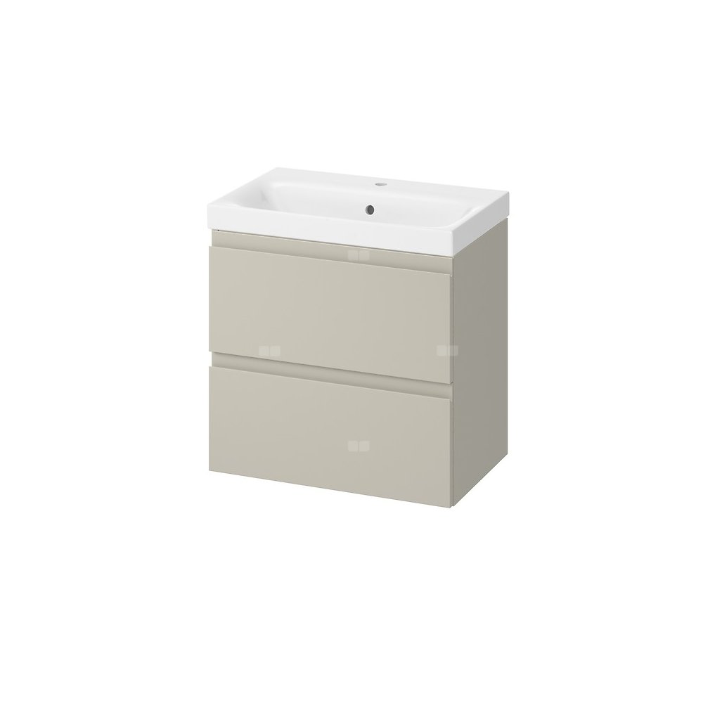W skład zestawu wchodzi szafka podumywalkowa MODUO SLIM w wersji do samodzielnego montażu oraz umywalka ceramiczna MODUO SLIM 60. Dzięki zmniejszonej głębokości, zestaw można zamontować nawet w wąskich pomieszczeniach. Front szafki wykonany został z płyty MDF, lakierowanej na kolor kaszmirowy o wykończeniu matowym. Szafka posiada dwie pełne szuflady, wygodne, frezowane uchwyty oraz system cichego domykania, rekomendujemy zastosowanie syfonu oszczędzającego miejsce.