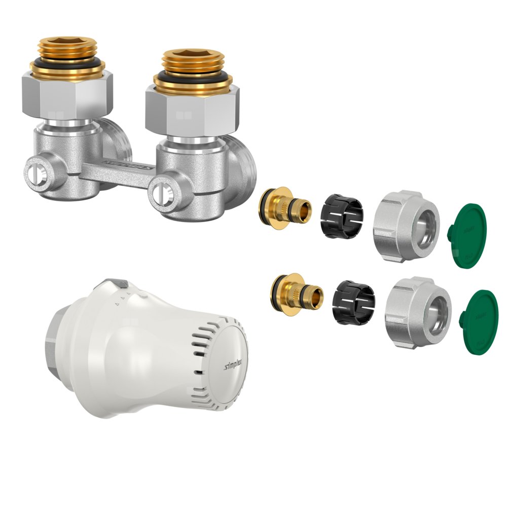 SET INSTALACYJNY (GŁOWICA TER. TC – S4 M30X1,5, DURUROWY BLOK KURKÓW KĄTOWY ME1/50, NYPEL 3/8" x 3/4", KOMPLET ZŁĄCZA A3 - 16 x 2,0)