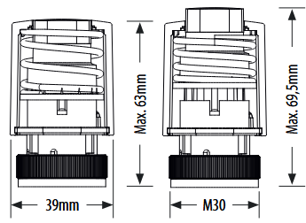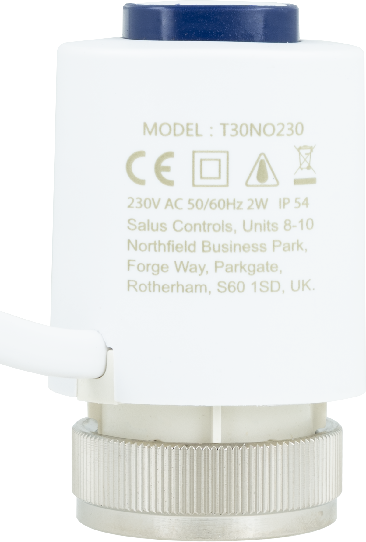 Siłownik elektrotermiczny SALUS T30NO230, złącze M30 x 1,5 2 VA, napięcie 230 V AC, kolor biały, kabel 0.9 m, ze wskaźnikiem