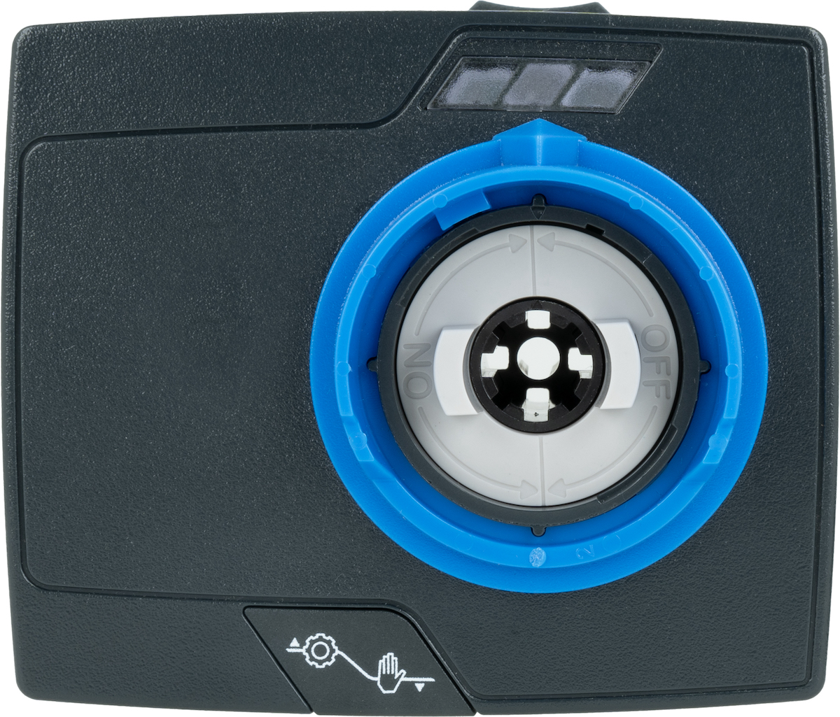 Umożliwia operowanie zaworem w trybie ręcznym przy użyciu pokrętła.