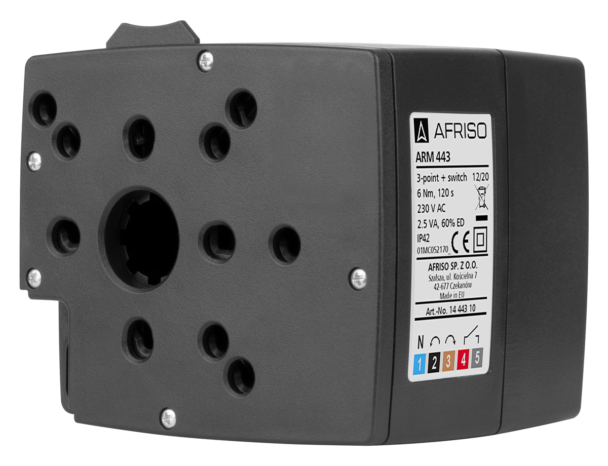 Stosowany w instalacjach grzewczych i chłodzących.Montowany na 3 i 4-drogowych obrotowych zaworach mieszających.