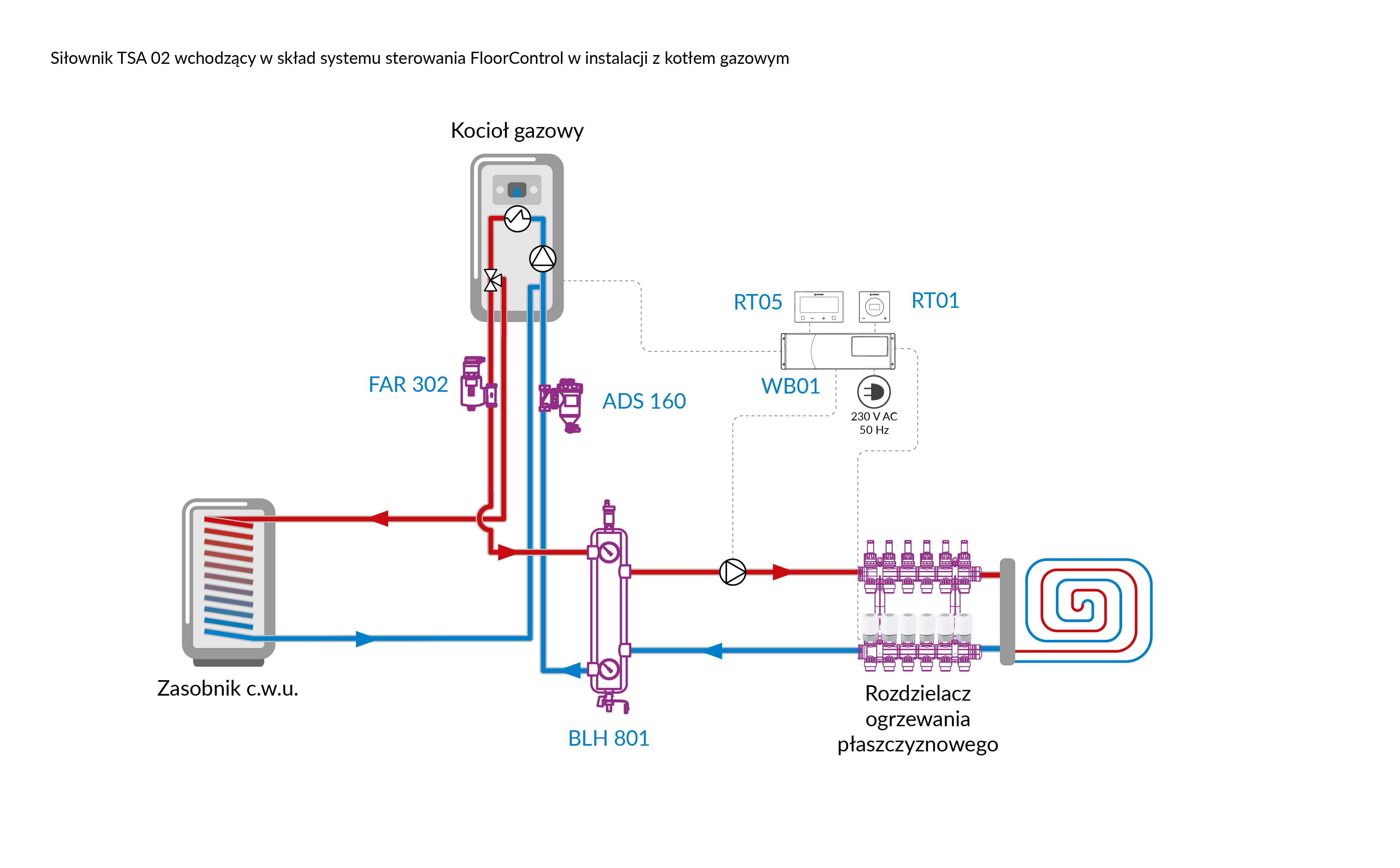 Połączony z listwą systemu sterowania instalacją płaszczyznową (np. FloorControl, CosiTherm) umożliwia ustawienie różnych temperatur w każdej ze stref.