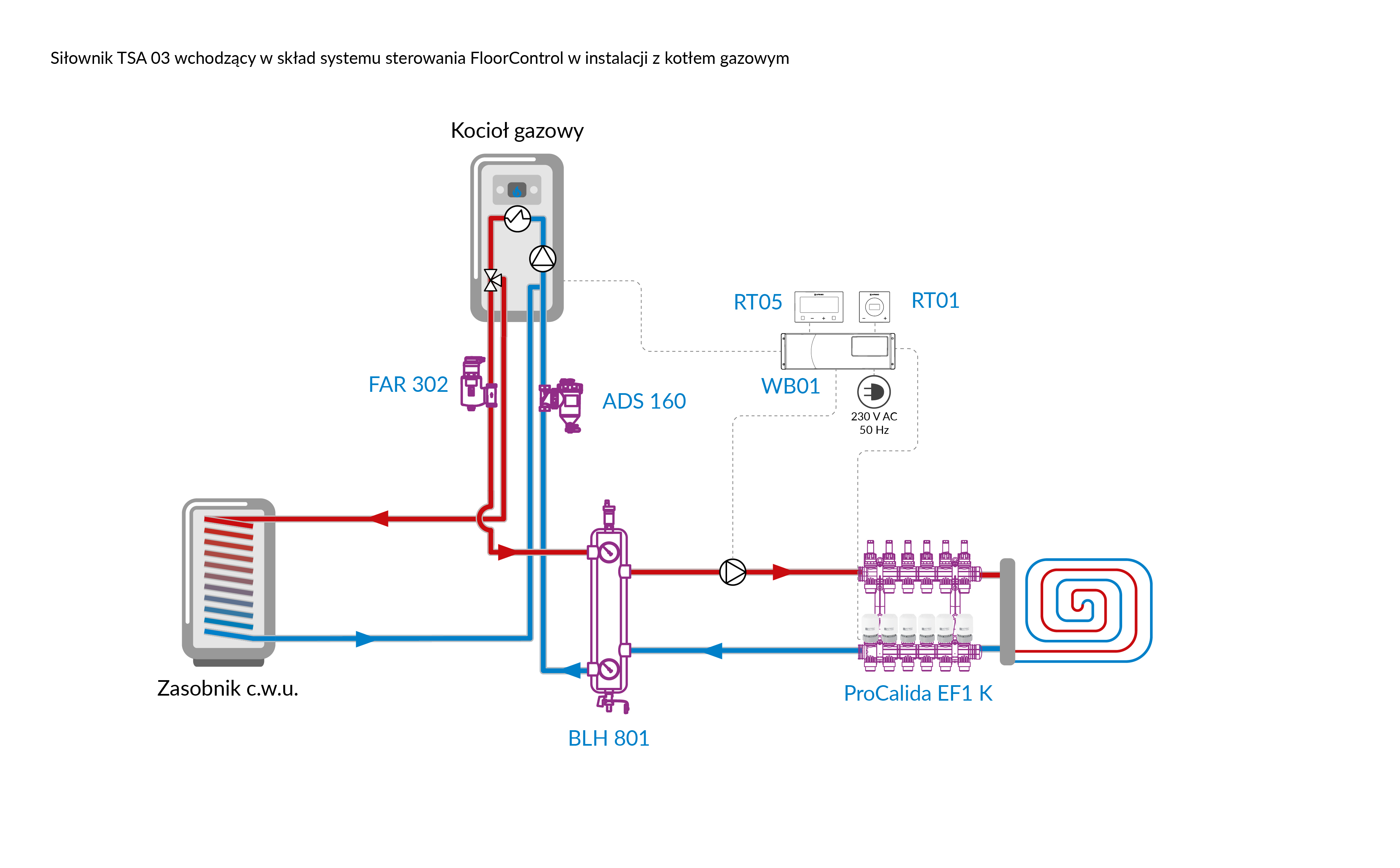 Połączony z listwą systemu sterowania instalacją płaszczyznową (np. FloorControl, CosiTherm) umożliwia ustawienie różnych temperatur w każdej ze stref.
