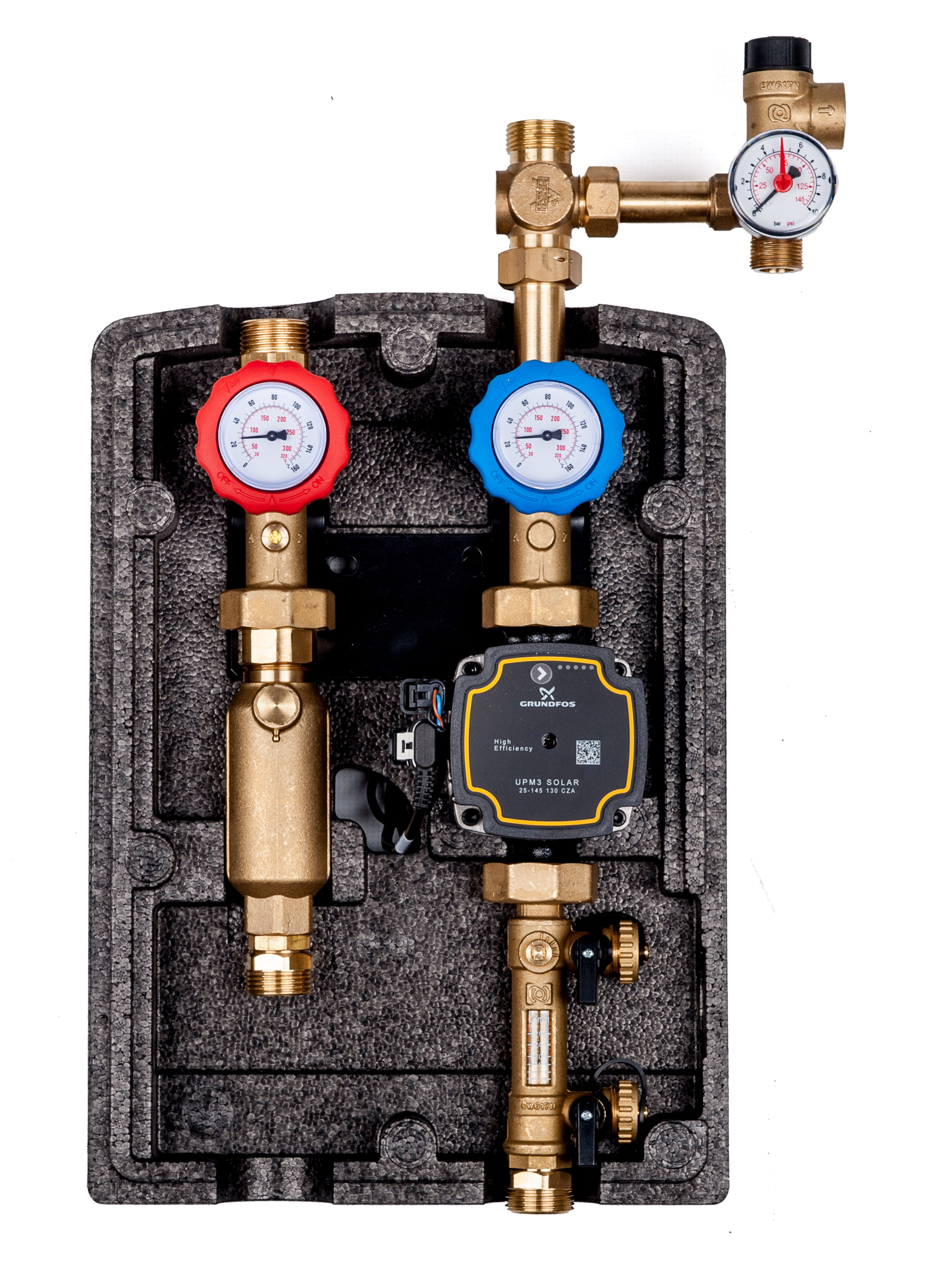 Solarna dwudrogowa grupa pompowa Viteco 2D/8-28L (z pompą elektroniczną Grundfos UPM3 Solar 25-145, z rotametrem 8-28 l/min)