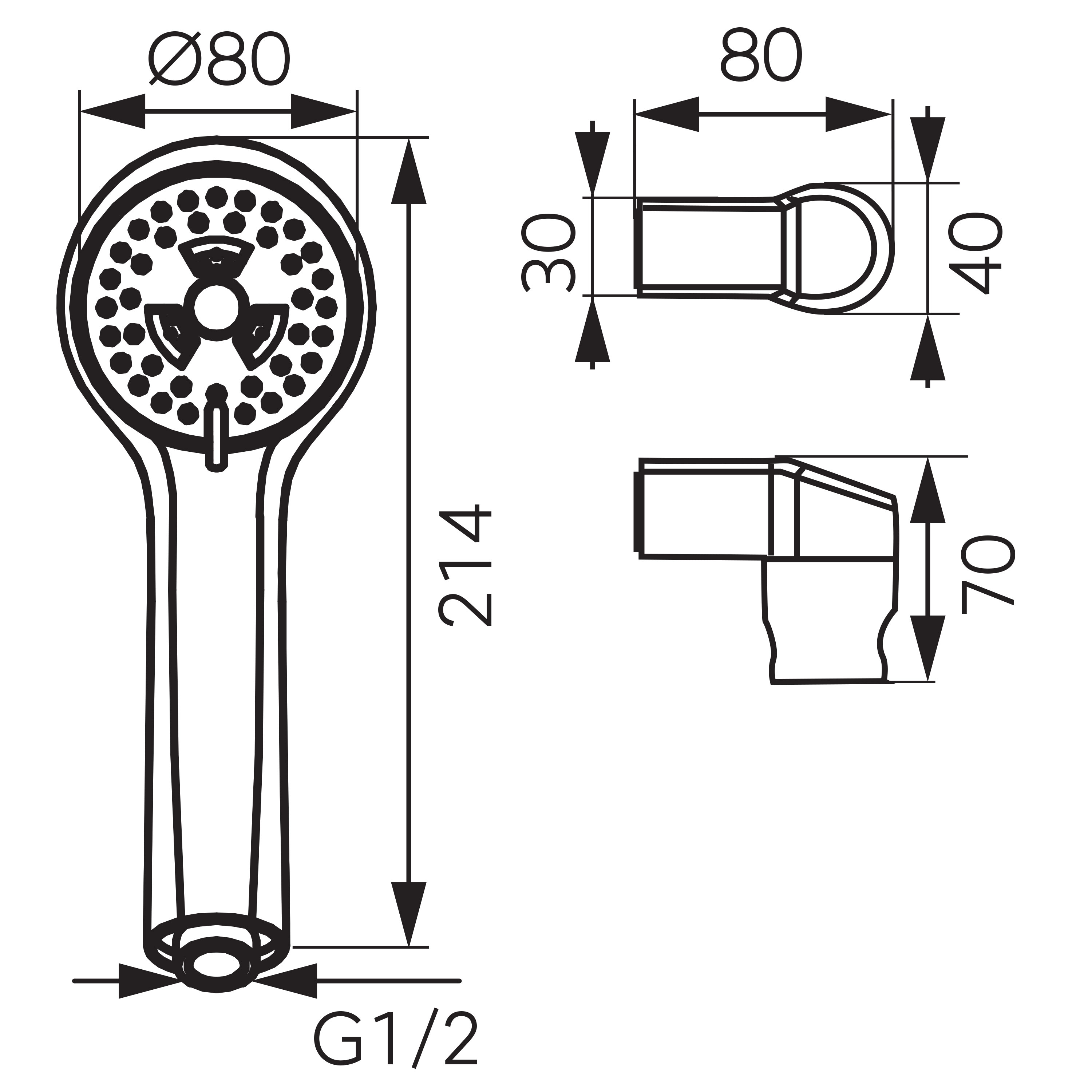 Punktowy zestaw natryskowy z 3-funkcyjną rączką z możliwością wyboru typu strumienia. Funkcjonalny uchwyt natrysku z kąta położenia rączki prysznicowej. System Easy Clean ułatwi usuwanie osadu wapiennego z sitka rączki.