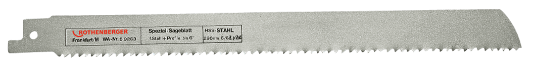 Do cięcia profili rurowych z metalu i stali nierdzewnej użyj specjalnego brzeszczotu HSS 290x25x1,6 mm w połączeniu z piłami elektronicznymi ROTIGER VARIO Electronic i Universal ROTIGER VARIO Electronic.
